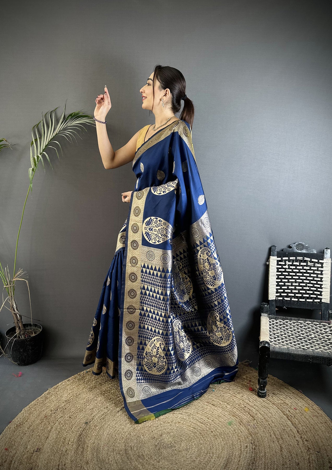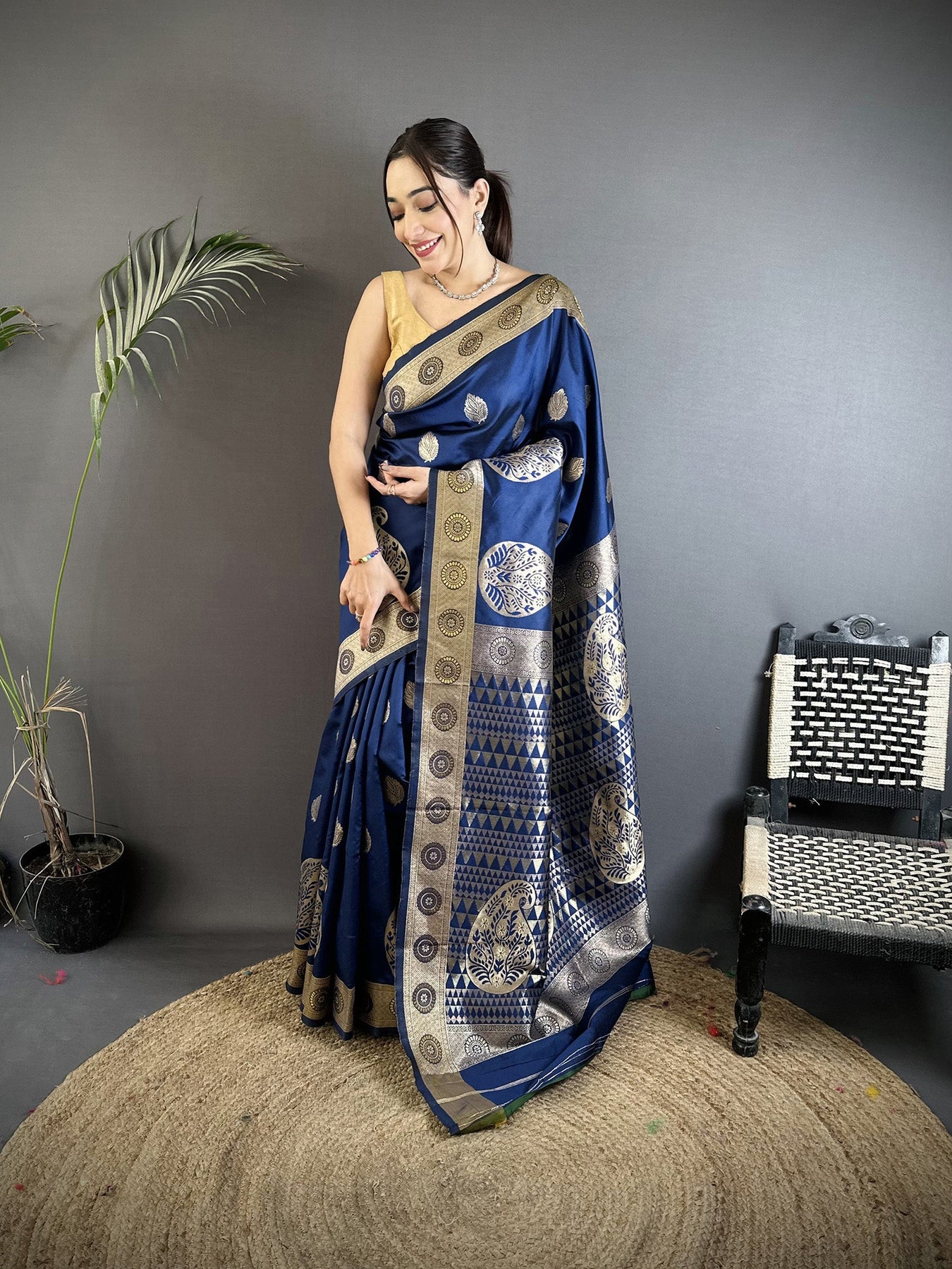 Navy Blue Soft Silk Paisley Zari Woven Banarasi Saree