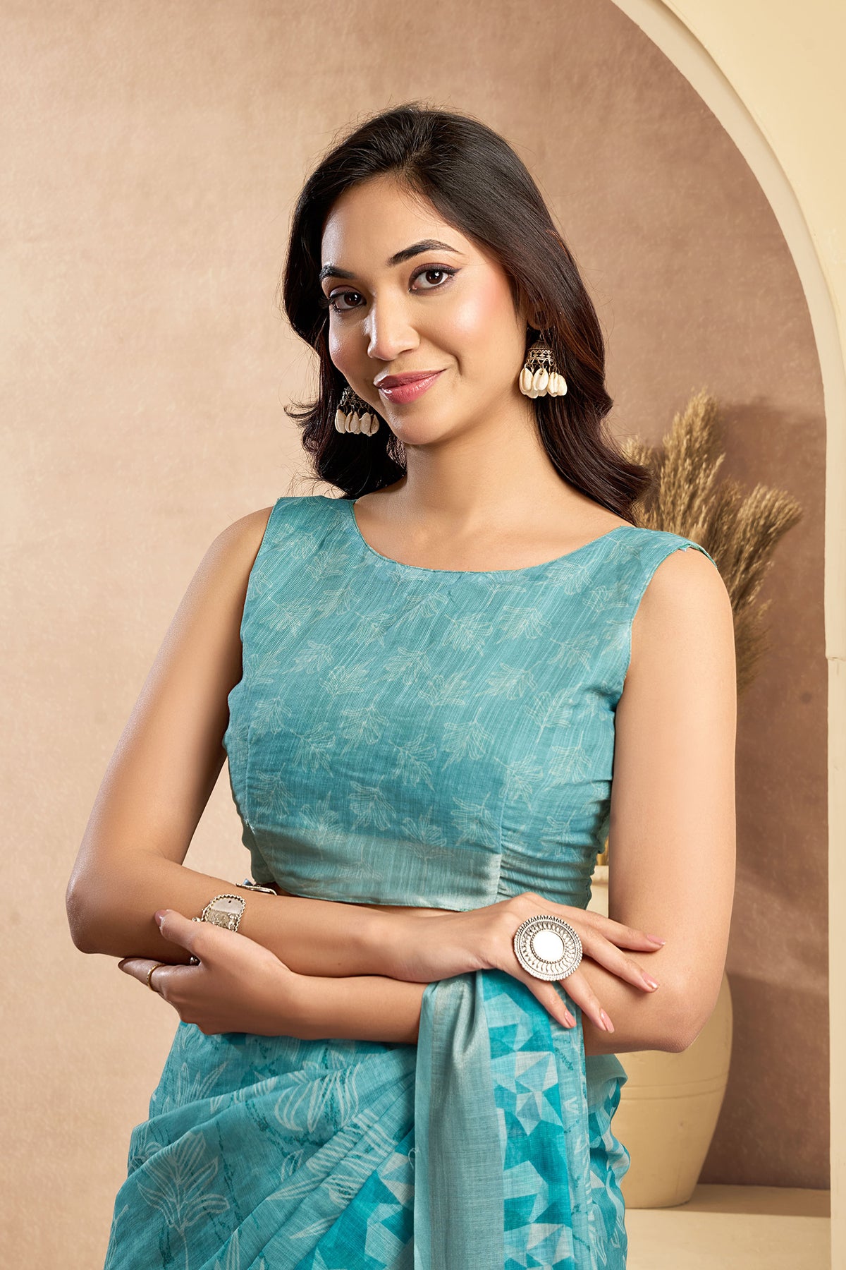 Flaunt your style with this Linen Floral Motifs Printed Ready To Wear Saree For Women. unique design and beautiful colour Saree. Each piece is elegantly crafted with love and will surely add to your wardrobe. They will surely fetch a lot of second glances as you club it with flashy accessory. Pair this piece with heels or flats for a graceful look.