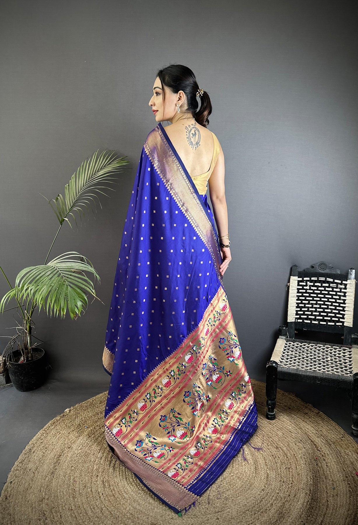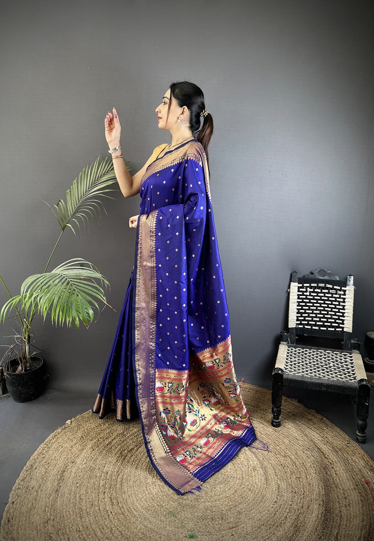 Royal Blue Soft Lichi Silk Butti Meenakari Work Paithani Saree