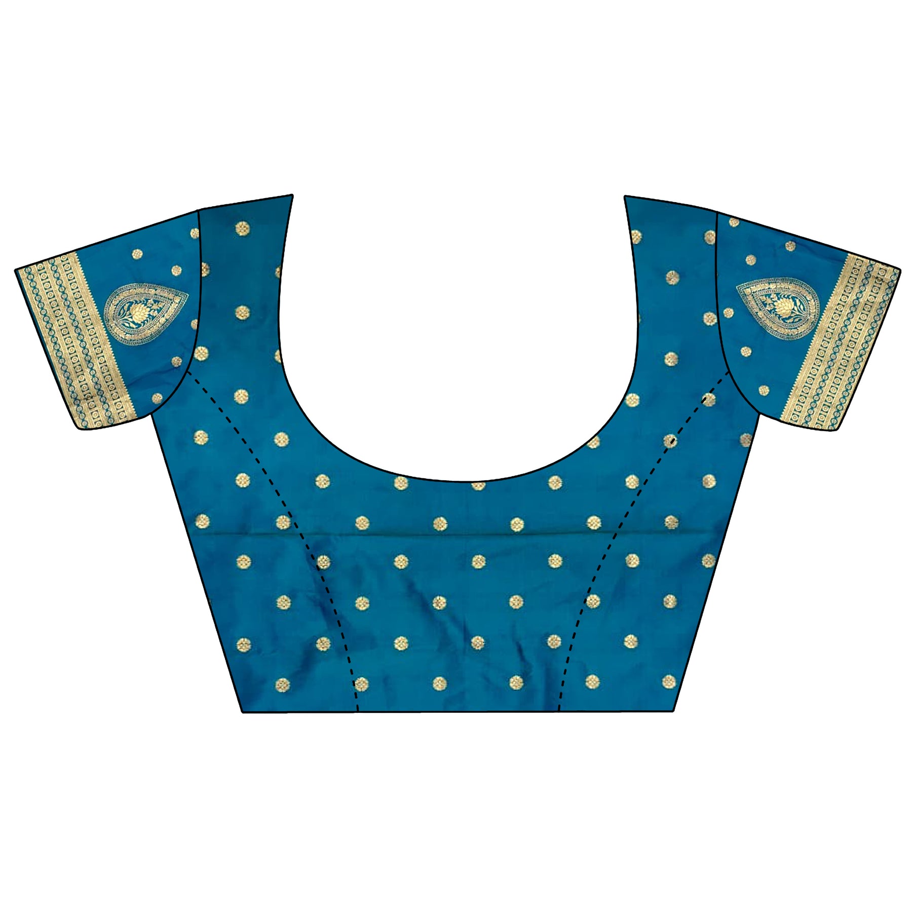 Flaunt your style with this Soft Silk Mofits Zari Weaving Banarasi Saree With Unique Border For Women. unique design and beautiful colour Saree. Each piece is elegantly crafted with love and will surely add to your wardrobe. They will surely fetch a lot of second glances as you club it with flashy accessory. Pair this piece with heels or flats for a graceful look.