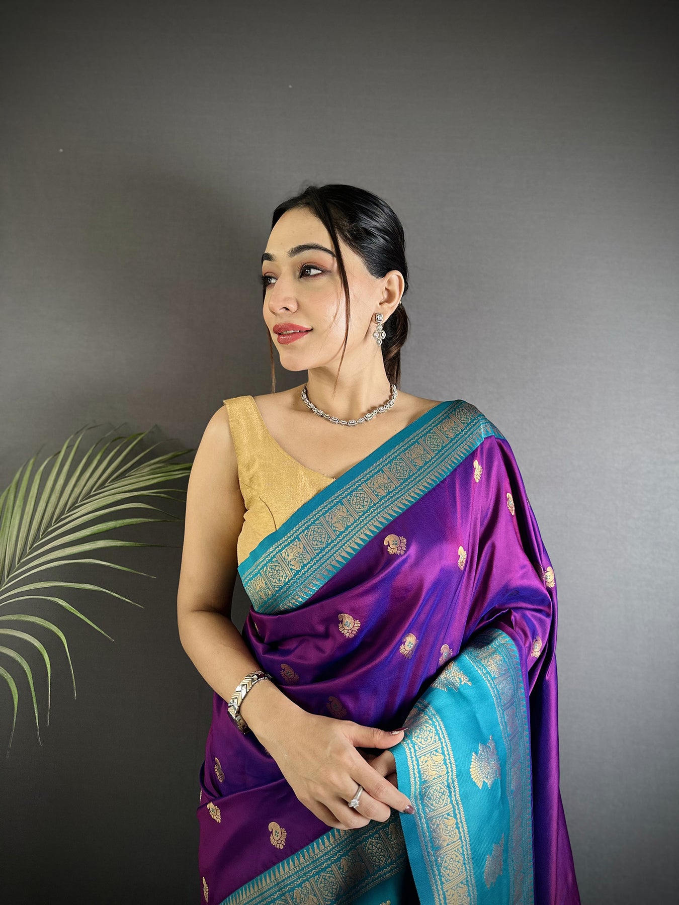 Purple Soft Silk Banarasi Zari Woven Butti Weaving Saree