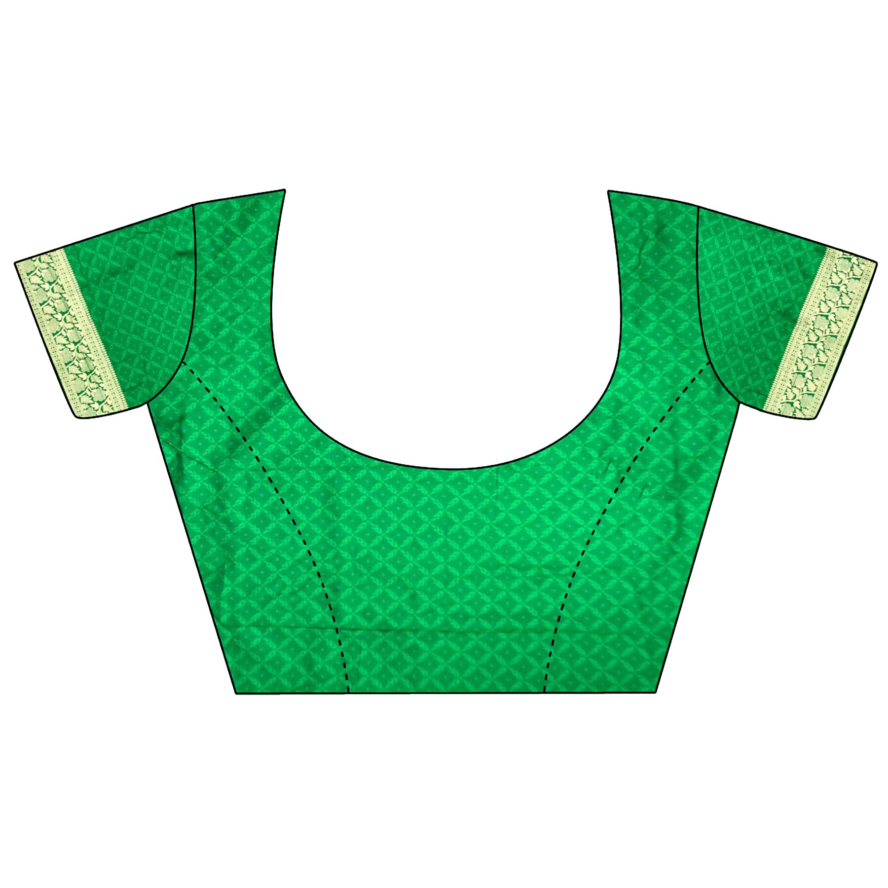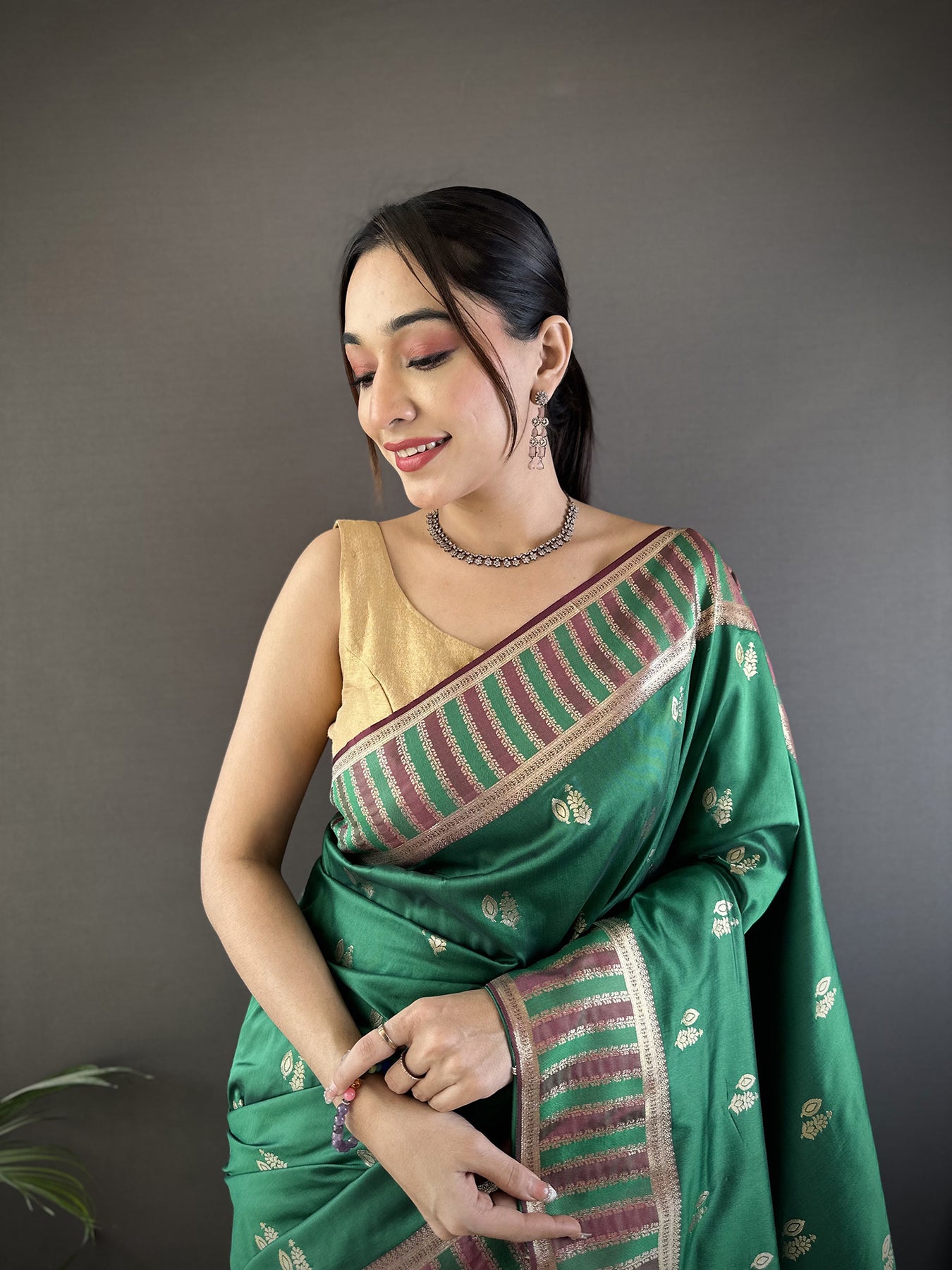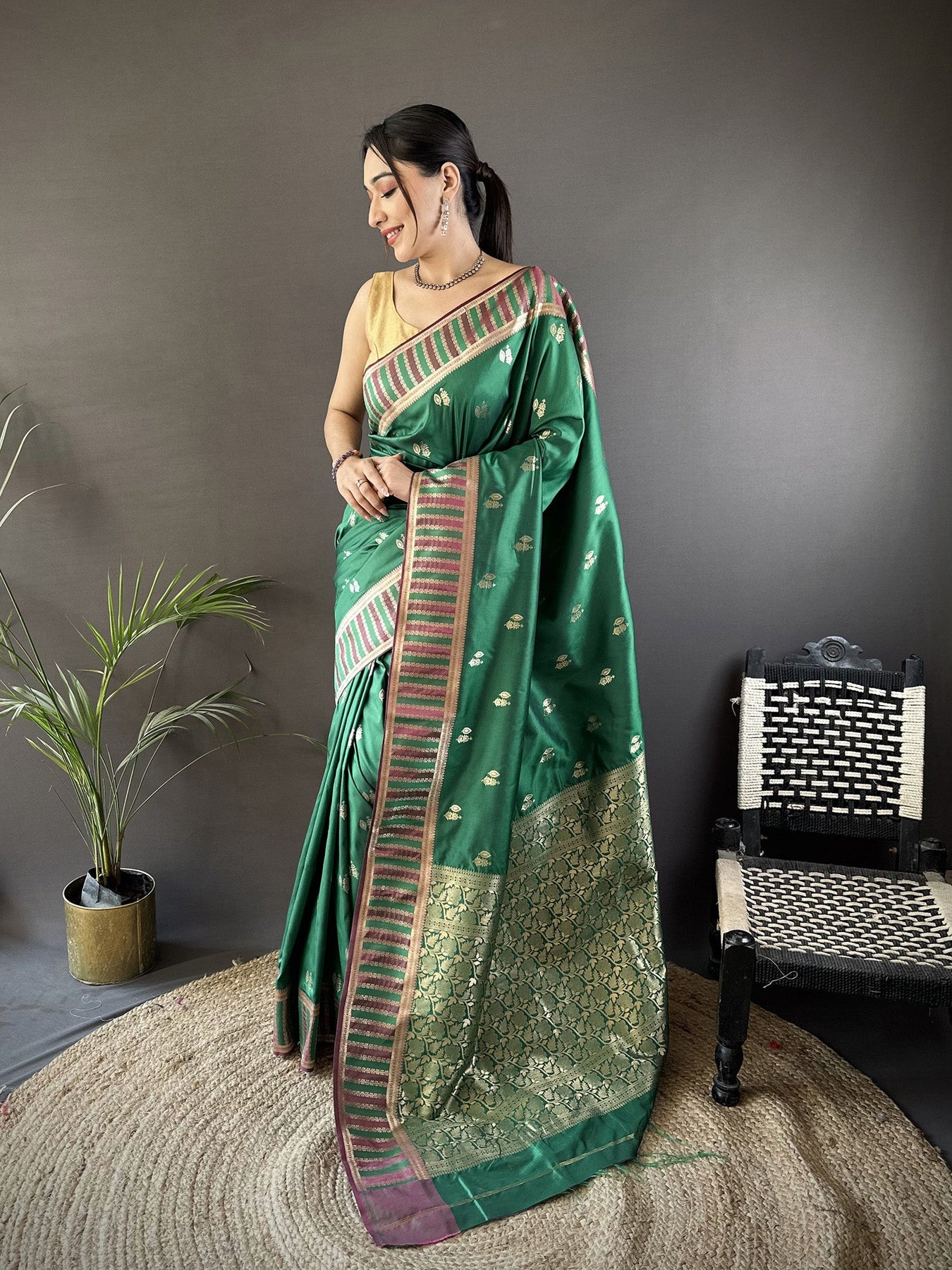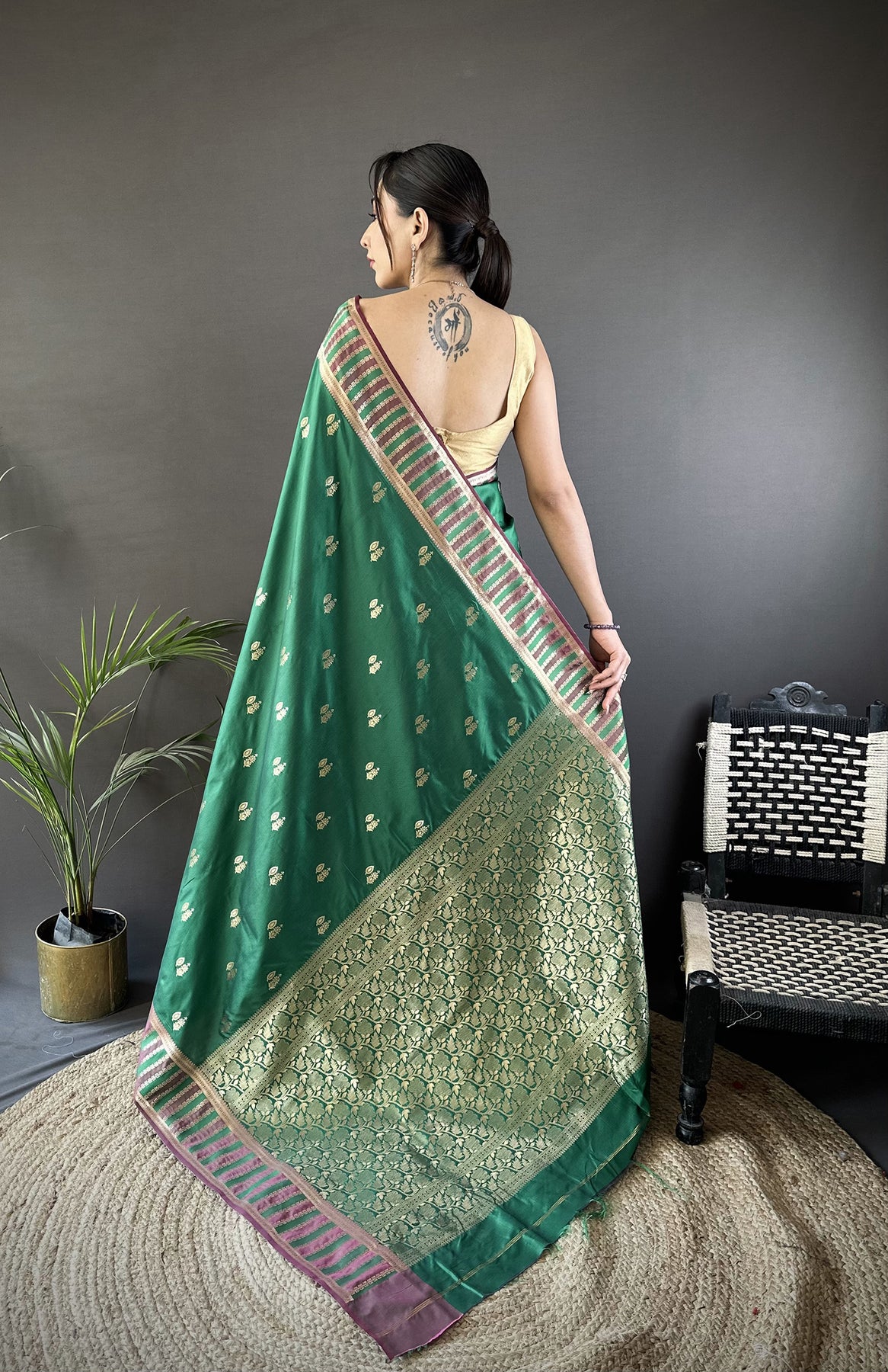 Green Lichi Silk Jacquard Zari Woven Motifs Banarasi Saree