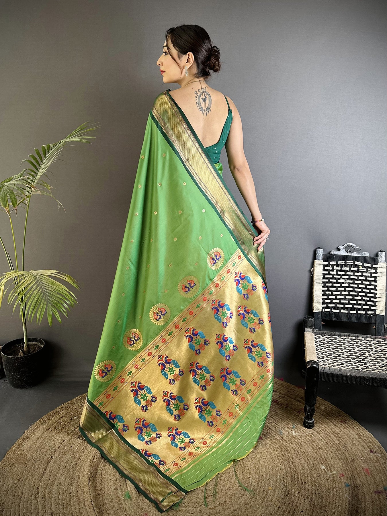 Green Lichi Silk Peacock Ethnic Motifs Zari Woven Paithani Saree