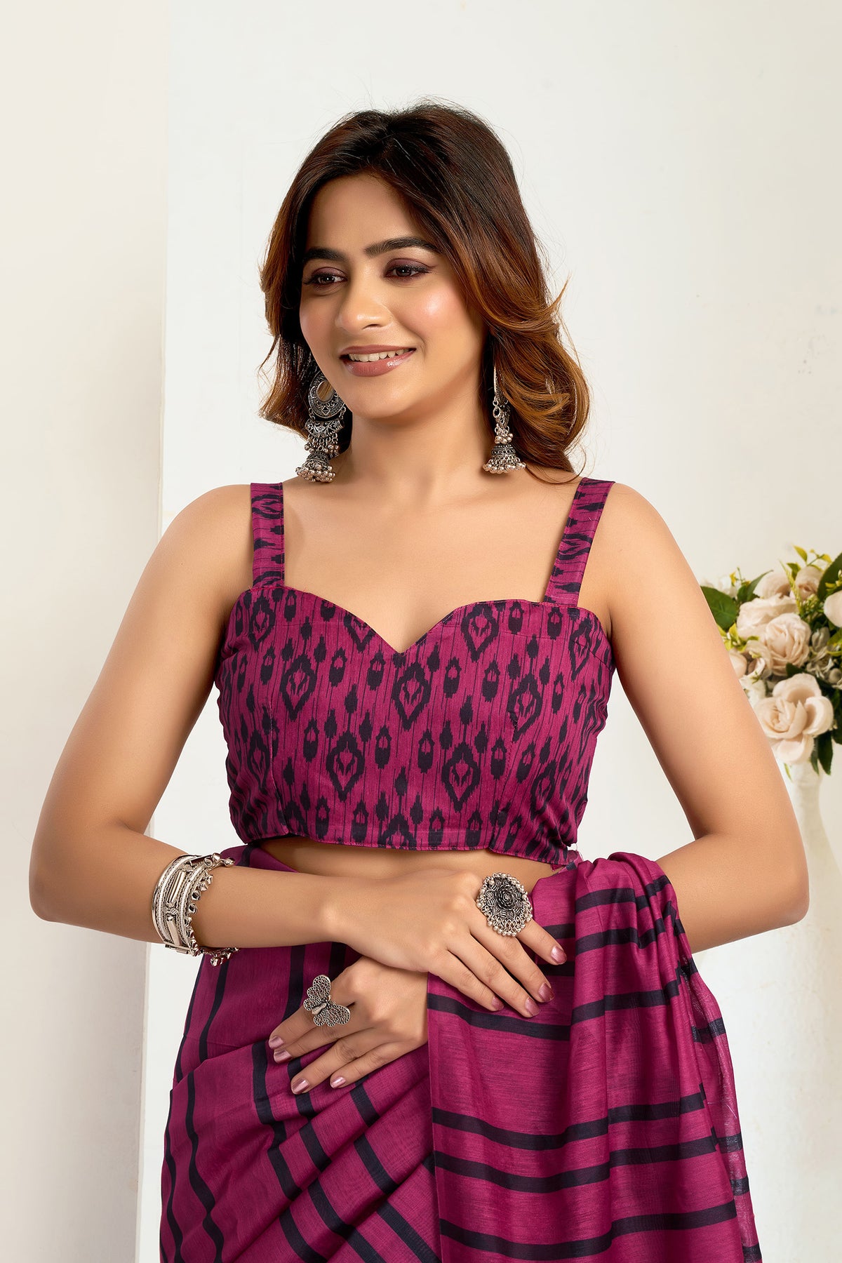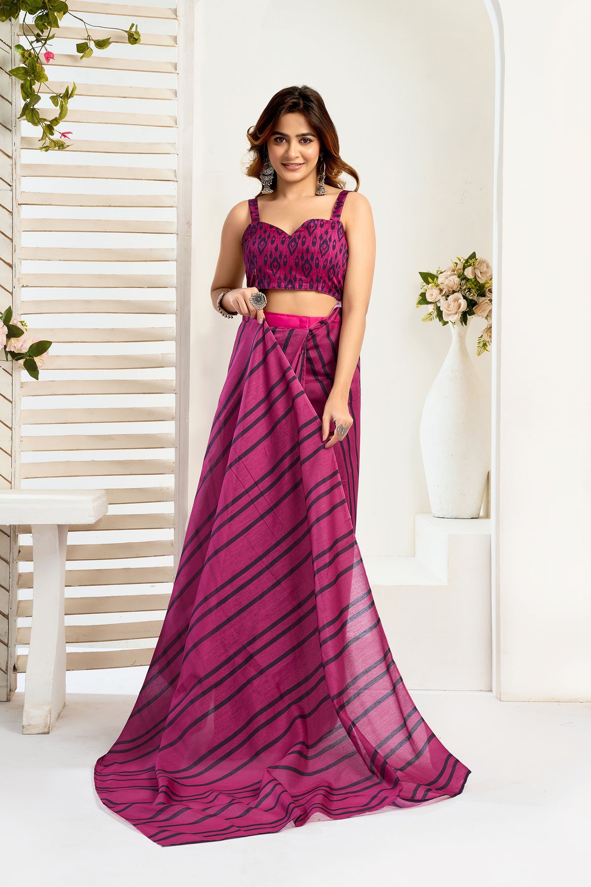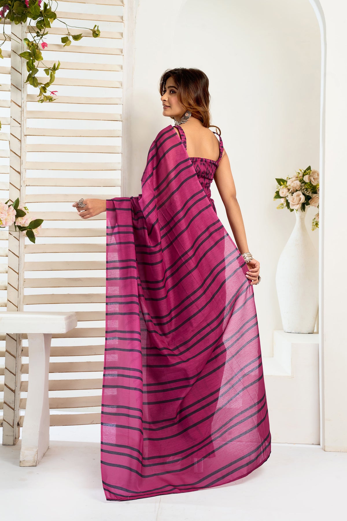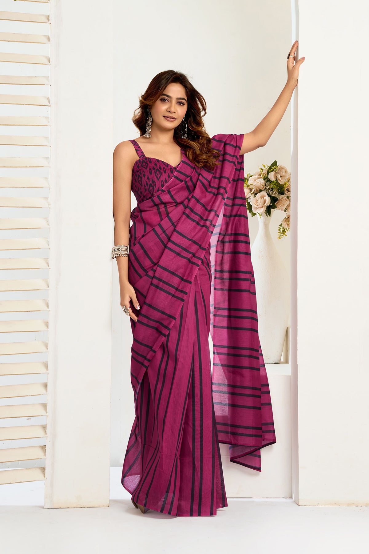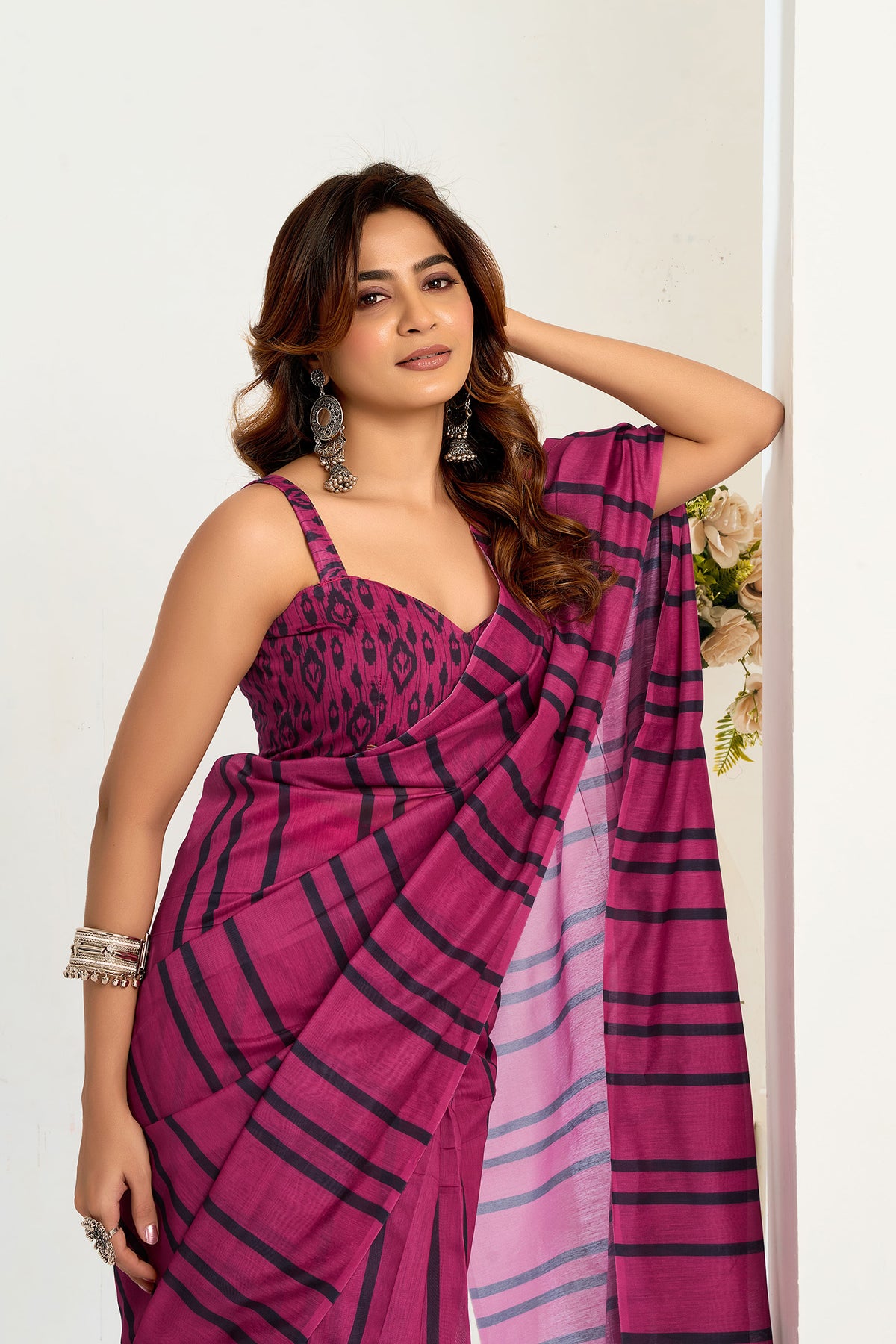 Flaunt your style with this Linen Striped Printed Ready To Wear Saree For Women. unique design and beautiful colour Saree. Each piece is elegantly crafted with love and will surely add to your wardrobe. They will surely fetch a lot of second glances as you club it with flashy accessory. Pair this piece with heels or flats for a graceful look.