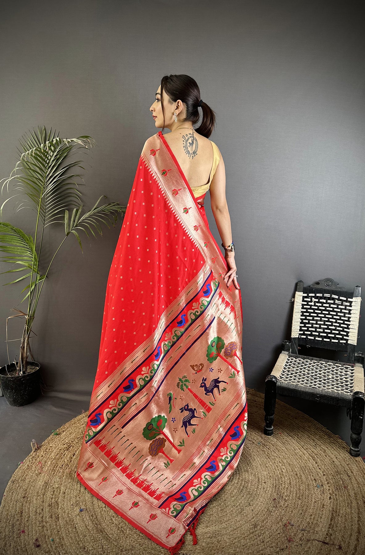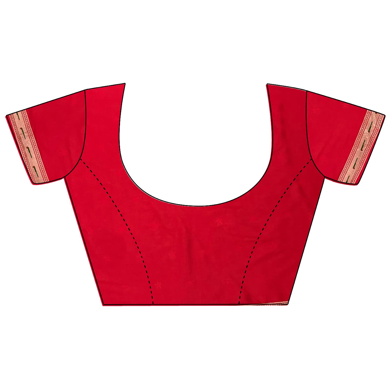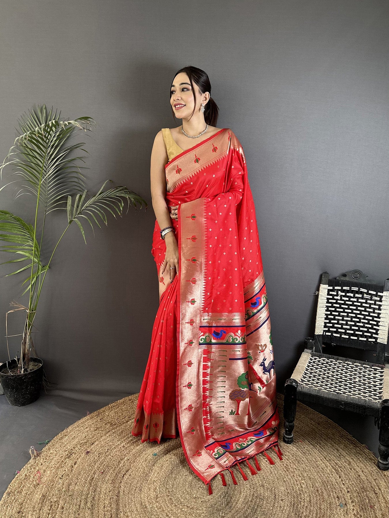Red Soft Lichi Silk Peacock & Floral Motifs Jacquard Kanchipuram Saree