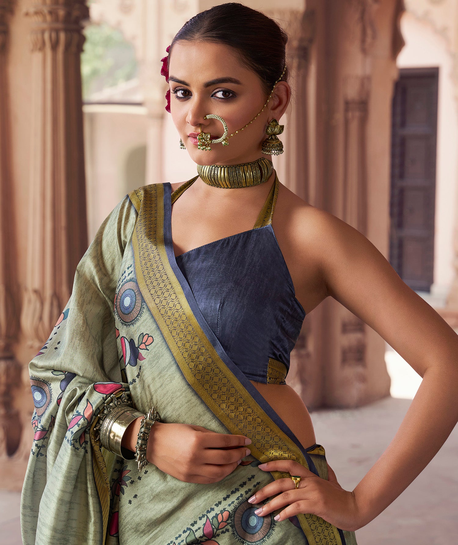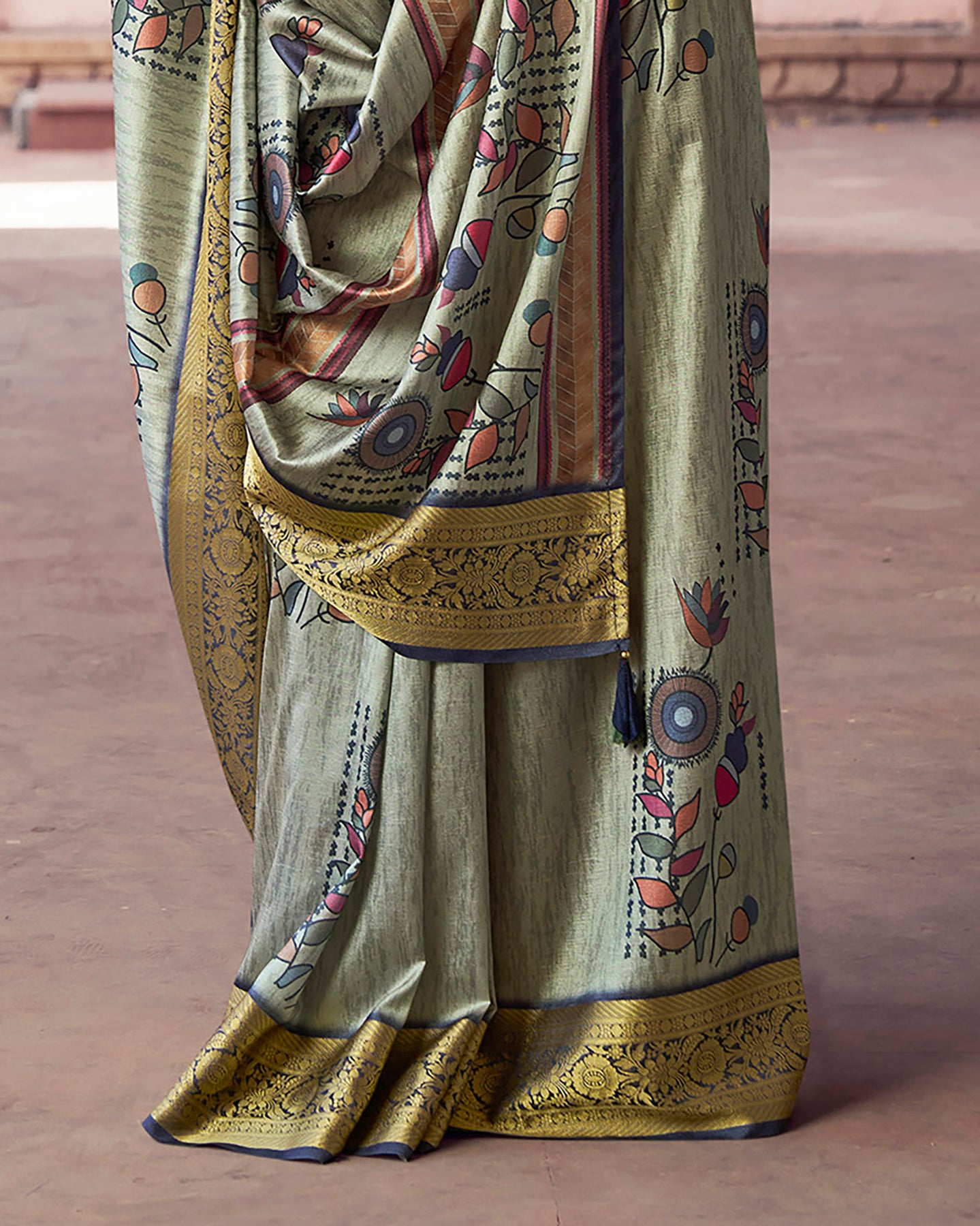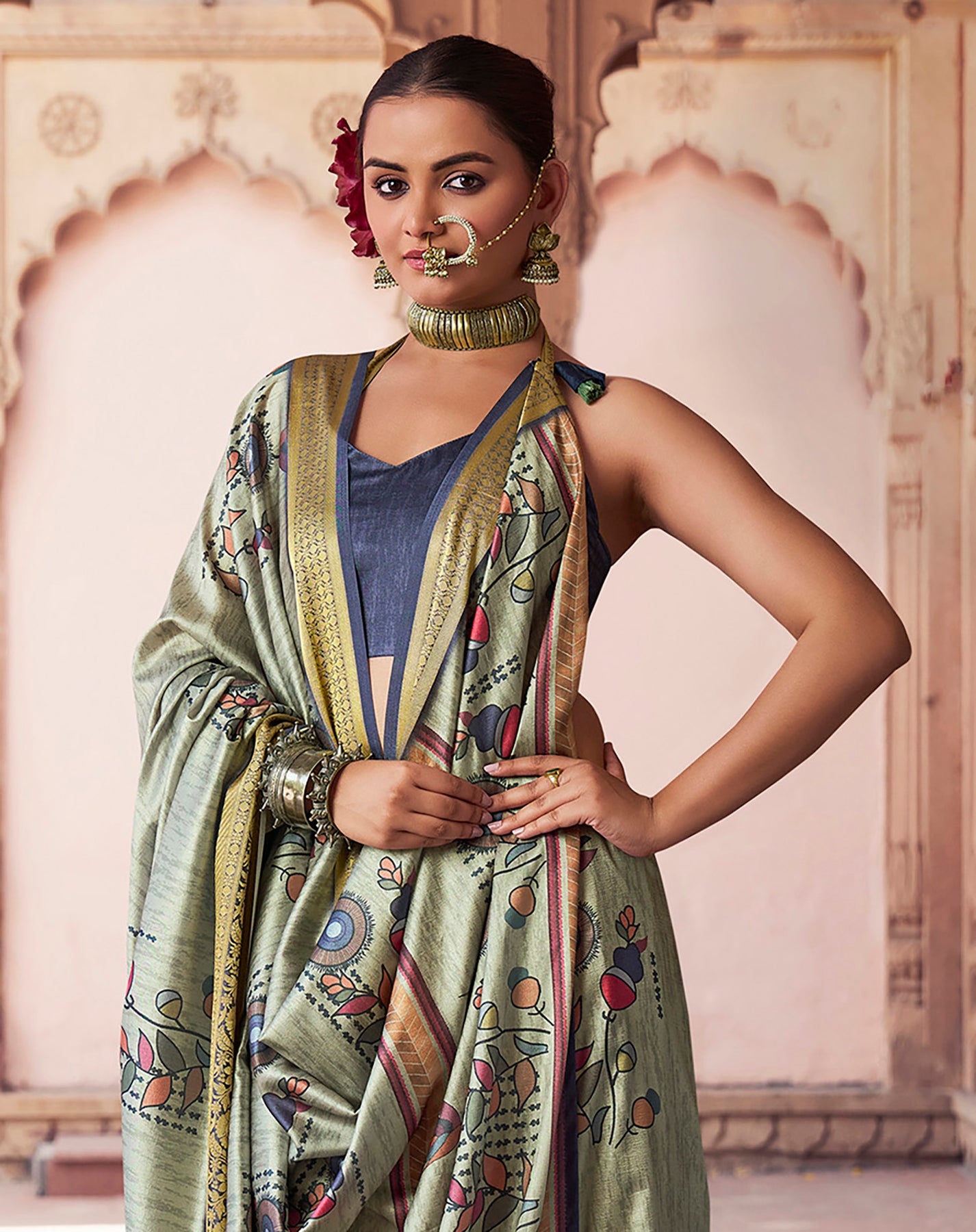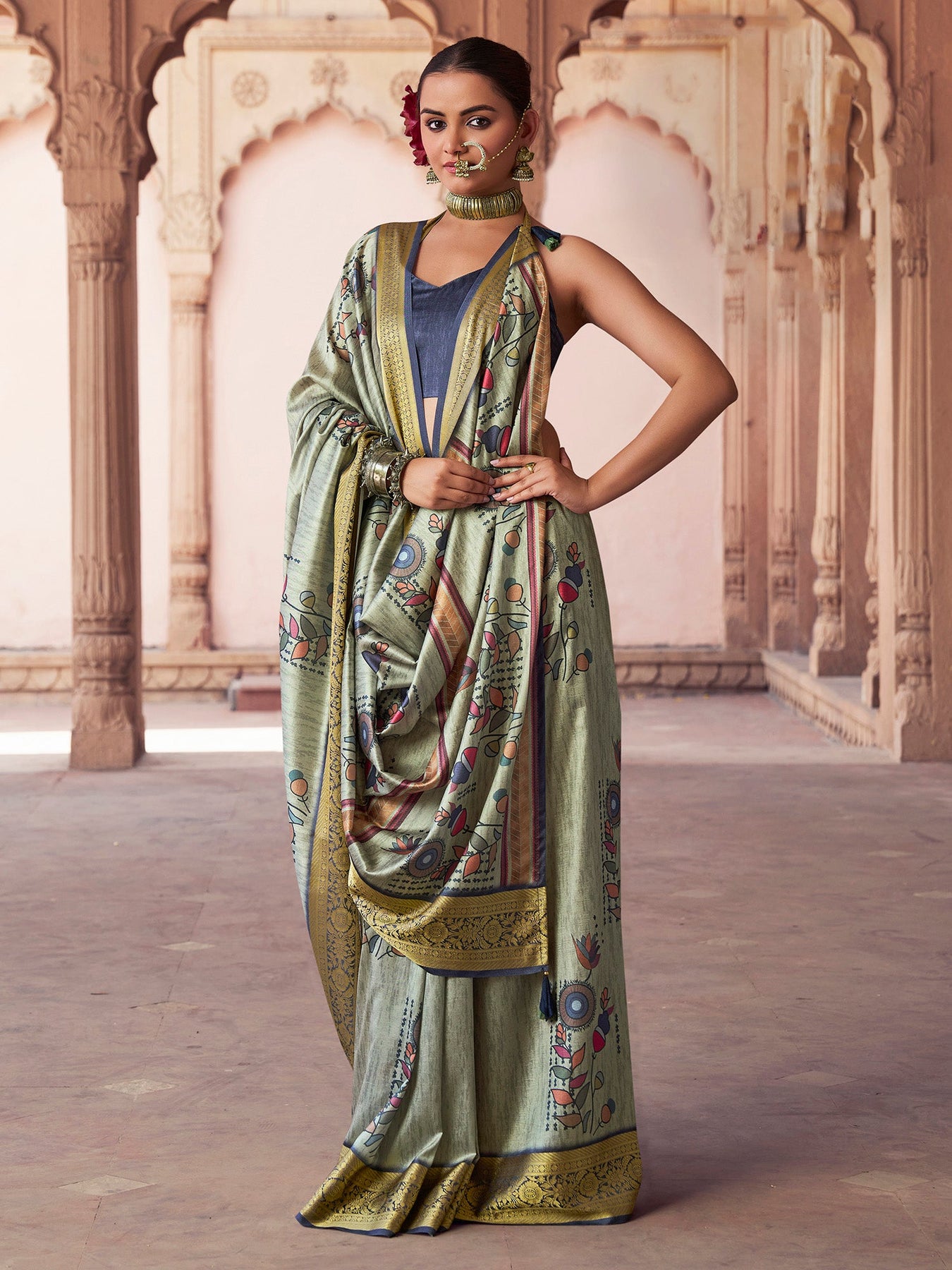 Easy to style and maintain, this sage green saree pairs beautifully with minimal jewelry. A perfect choice for women who love traditional art with a modern touch and effortless ethnic fashion.