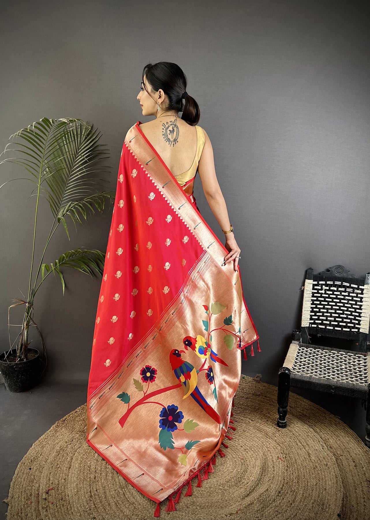 Our master weavers design unique sarees in-house, combining the best of both worlds- traditional and modern.