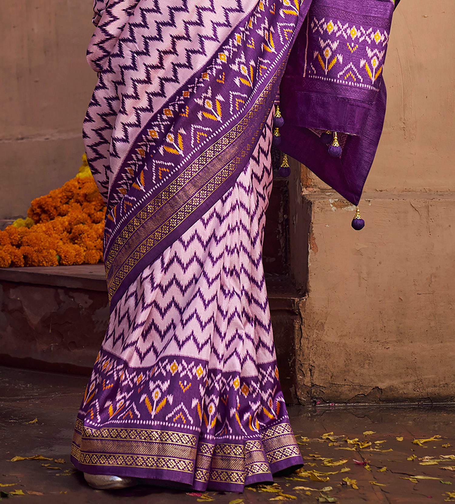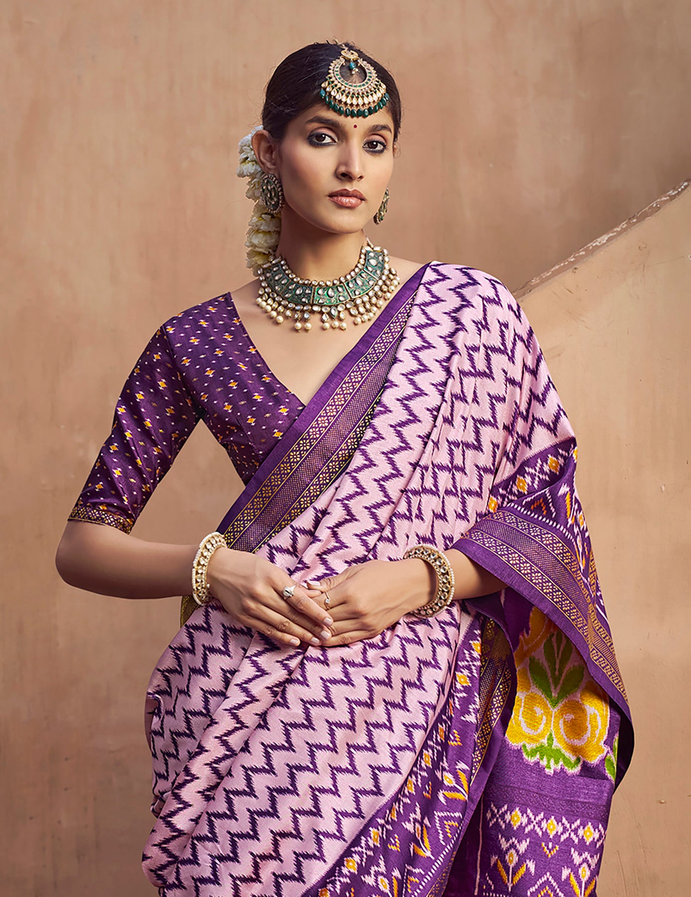 Lavender Soft Silk Ikkat Printed Patola saree