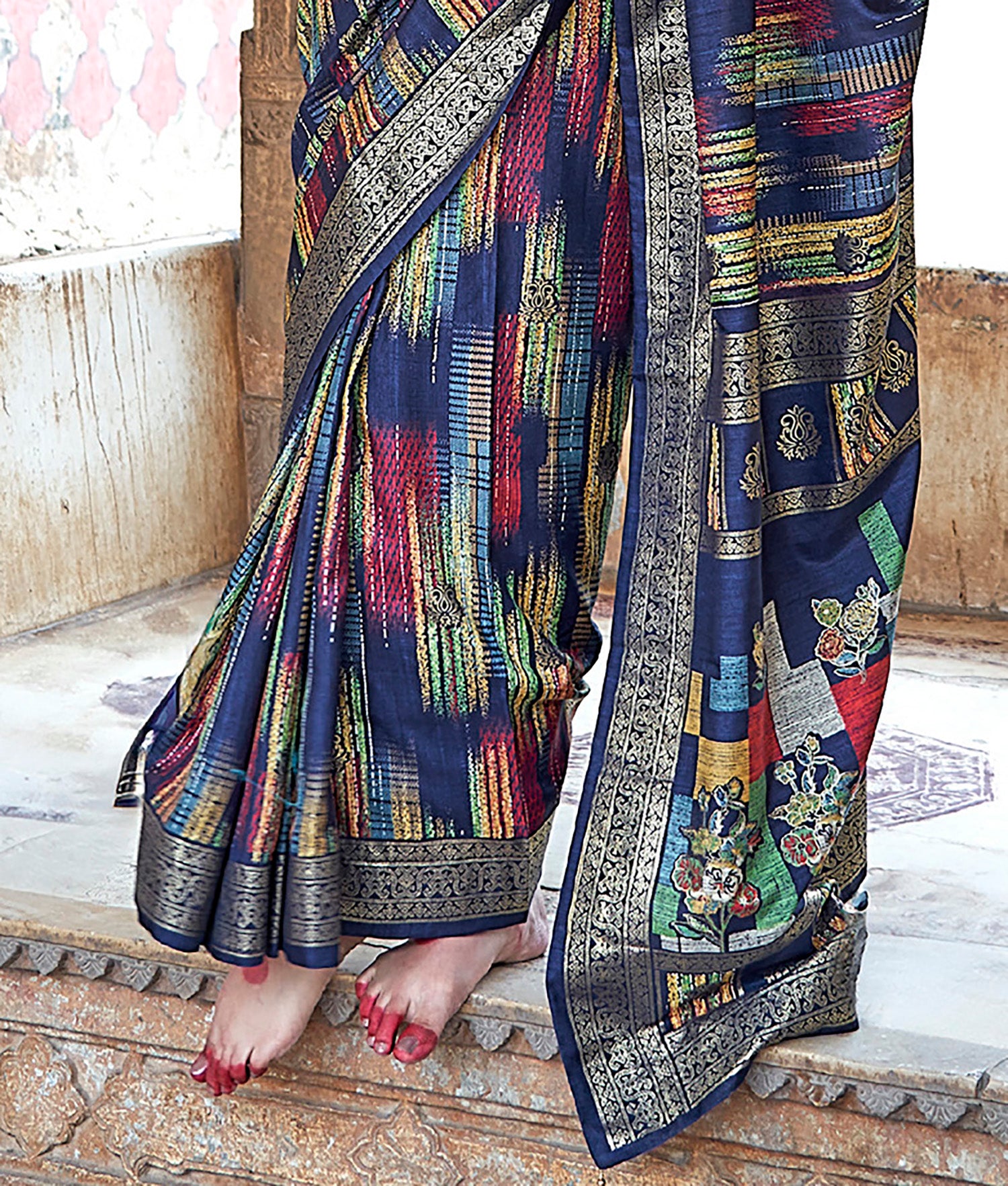 Navy Blue Soft Silk Woven Patola Printed Saree