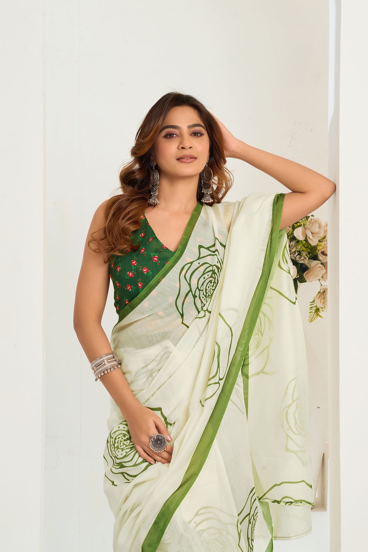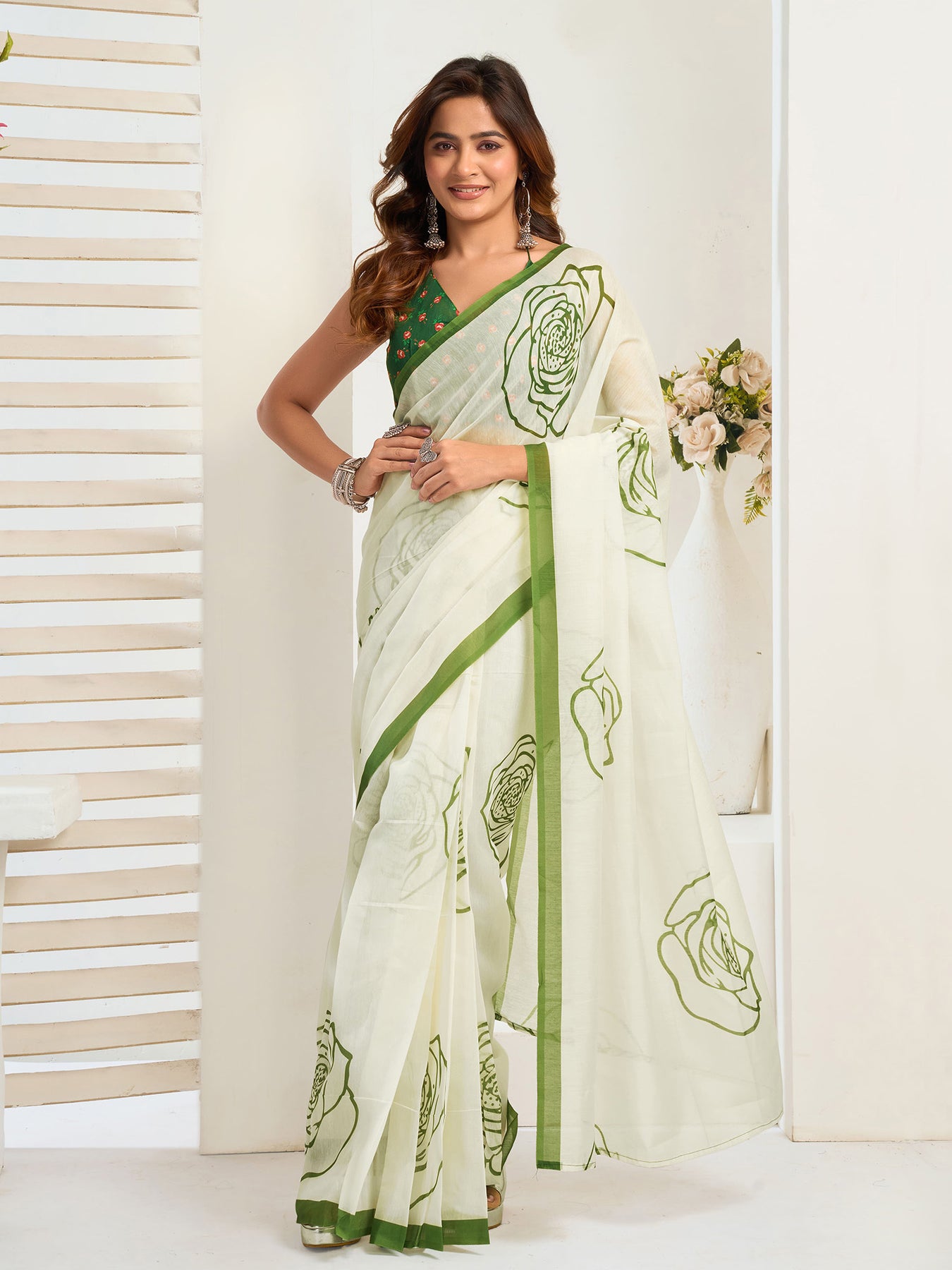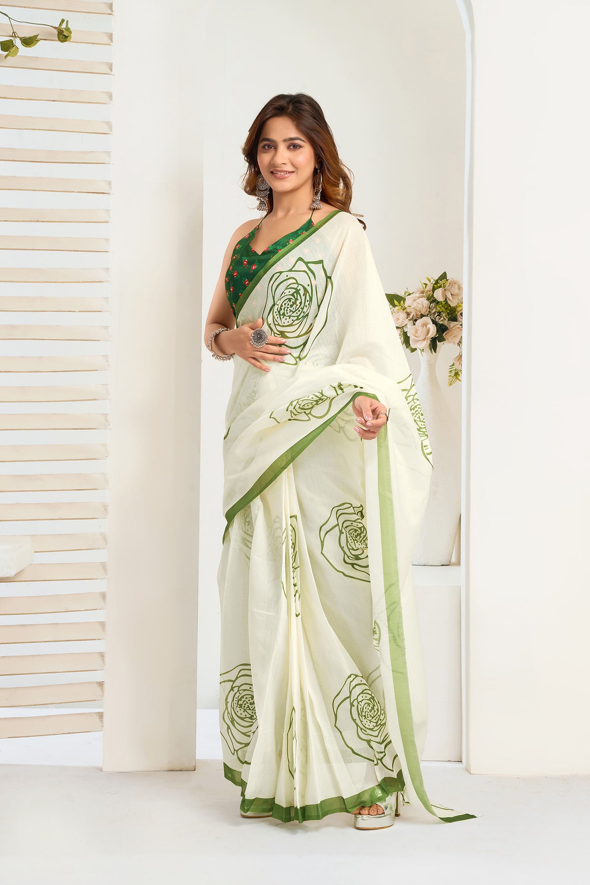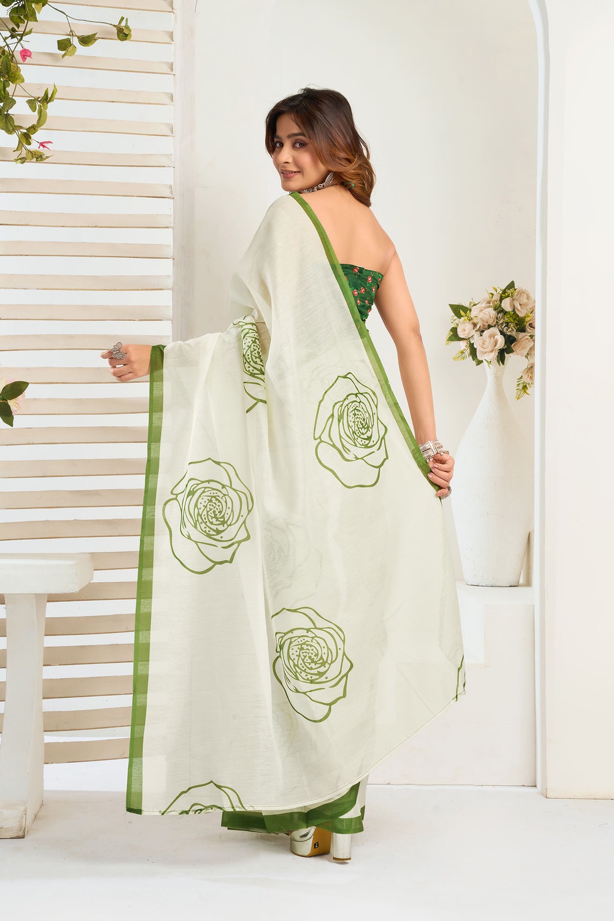 Flaunt your style with this Linen Floral Printed Ready To Wear Saree For Women. unique design and beautiful colour Saree. Each piece is elegantly crafted with love and will surely add to your wardrobe. They will surely fetch a lot of second glances as you club it with flashy accessory. Pair this piece with heels or flats for a graceful look.
