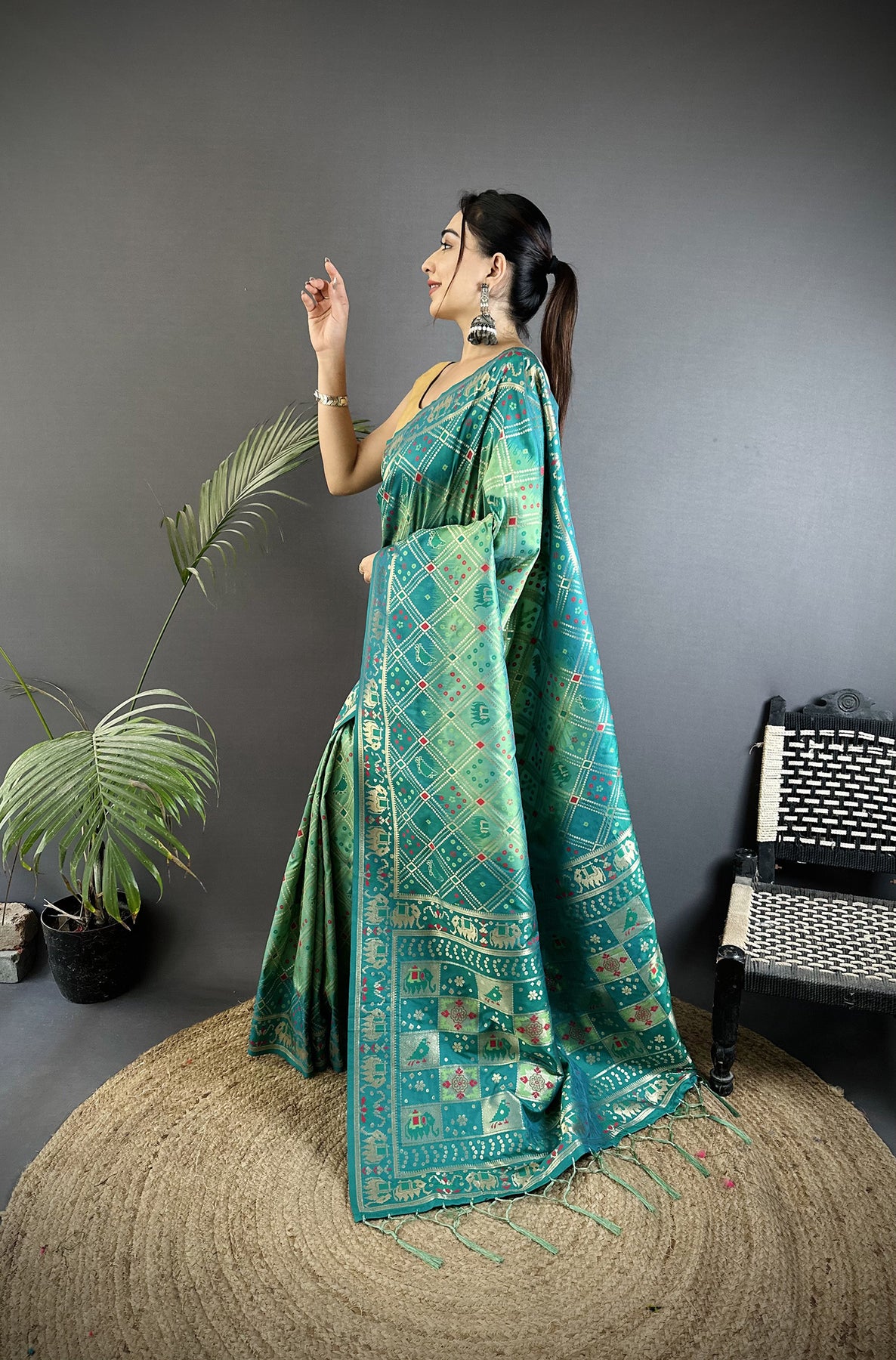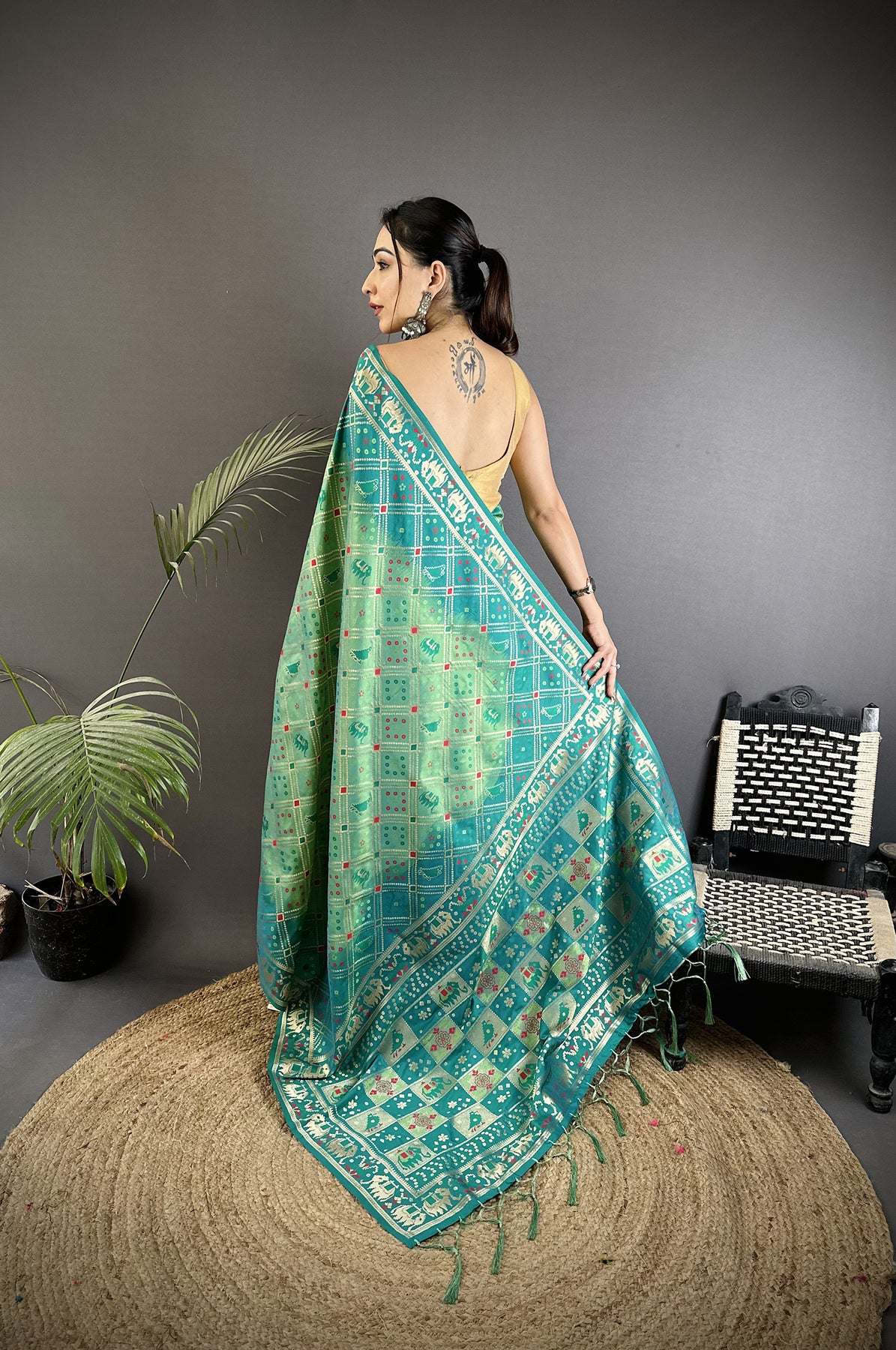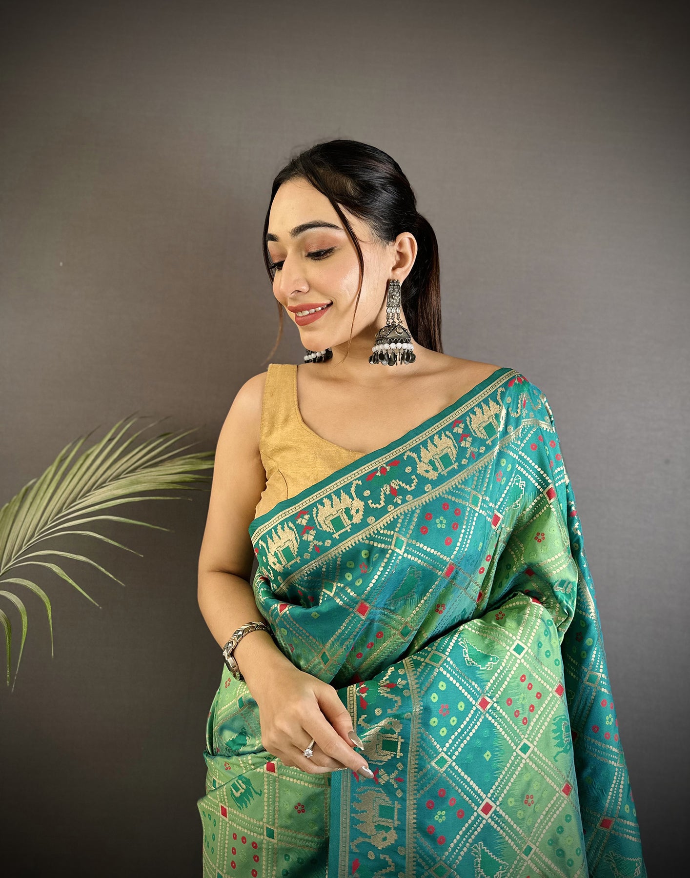 Tuquoise Soft Silk Geomatric Zari Woven Patola Saree