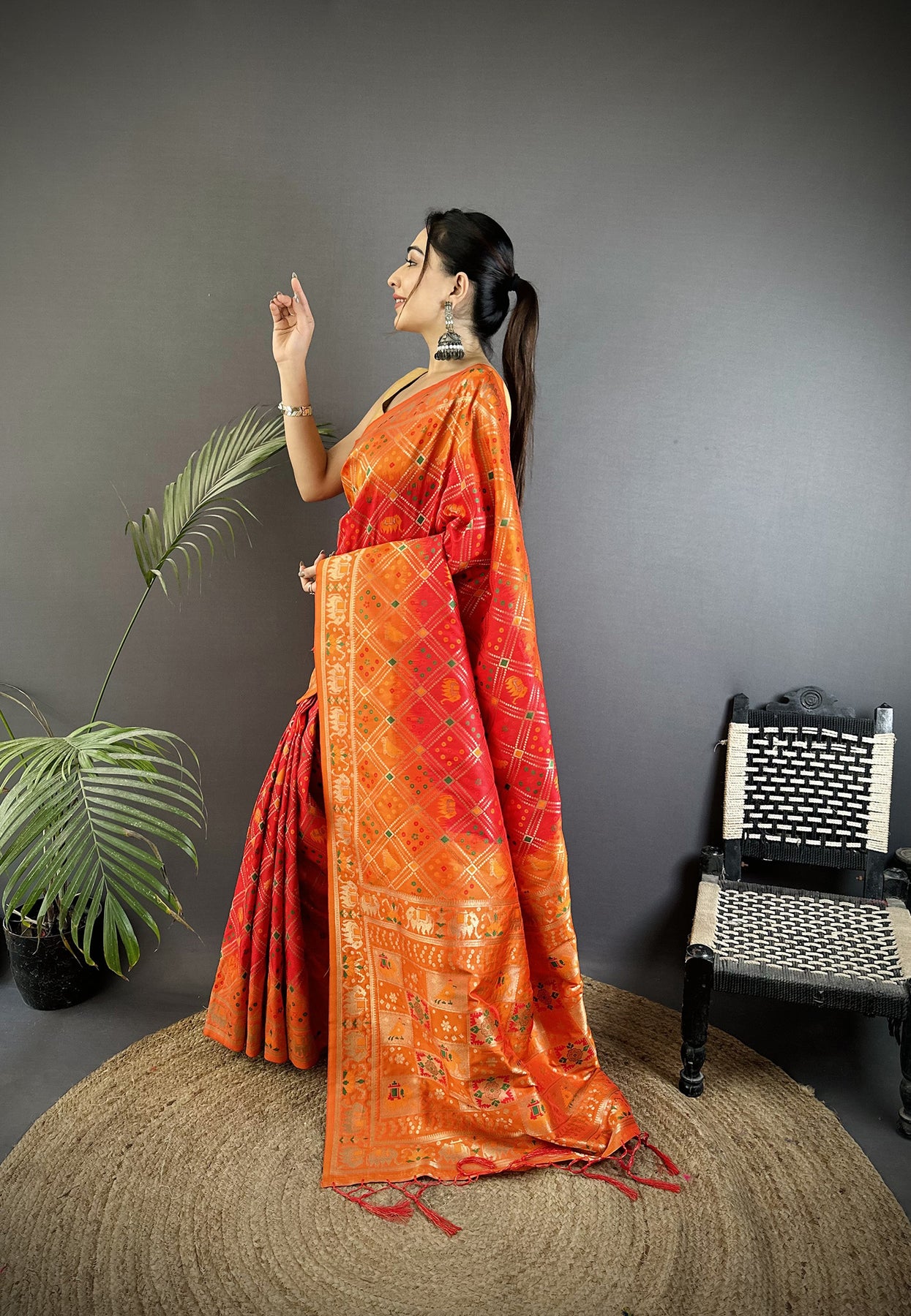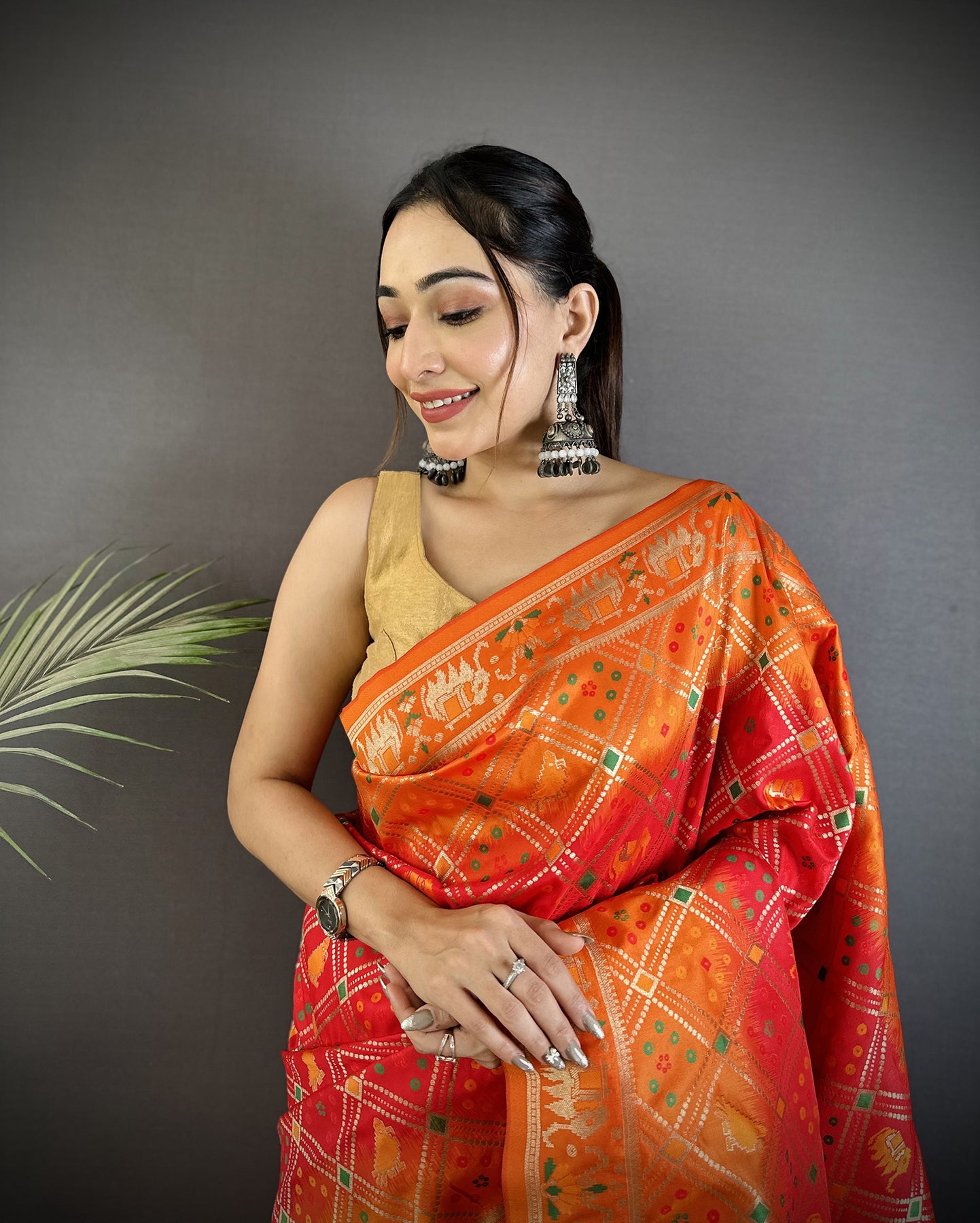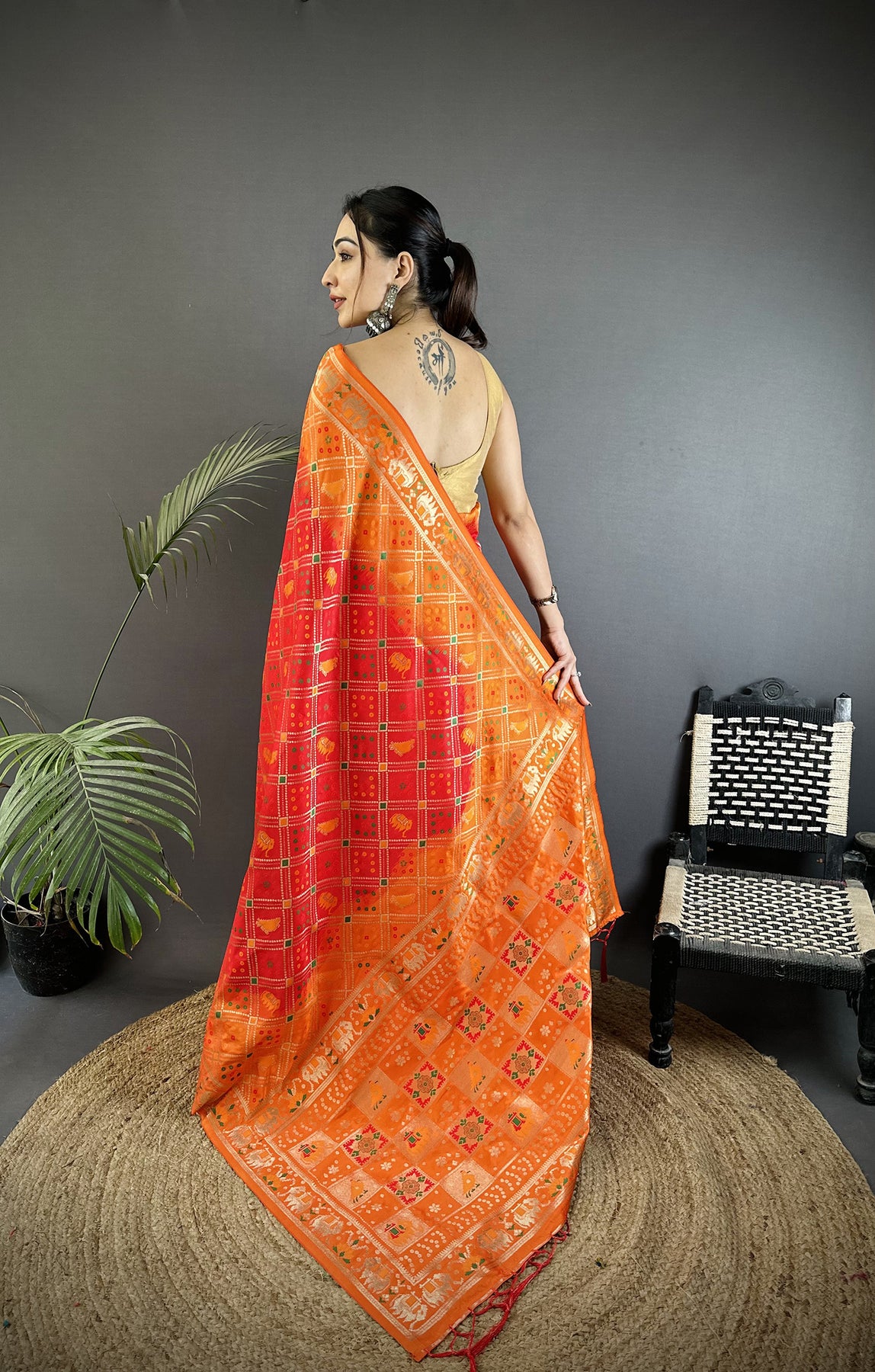 Orange Soft Silk Geomatric Zari Woven Patola Saree