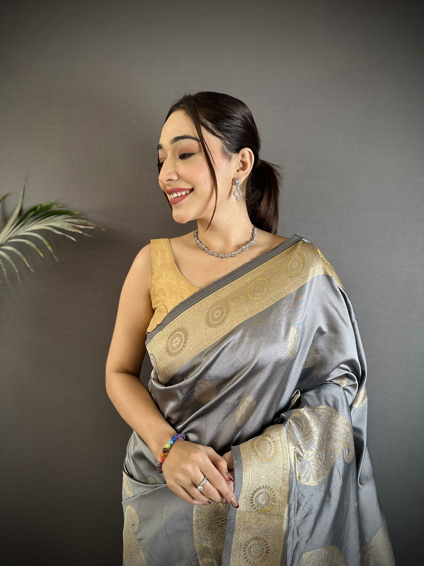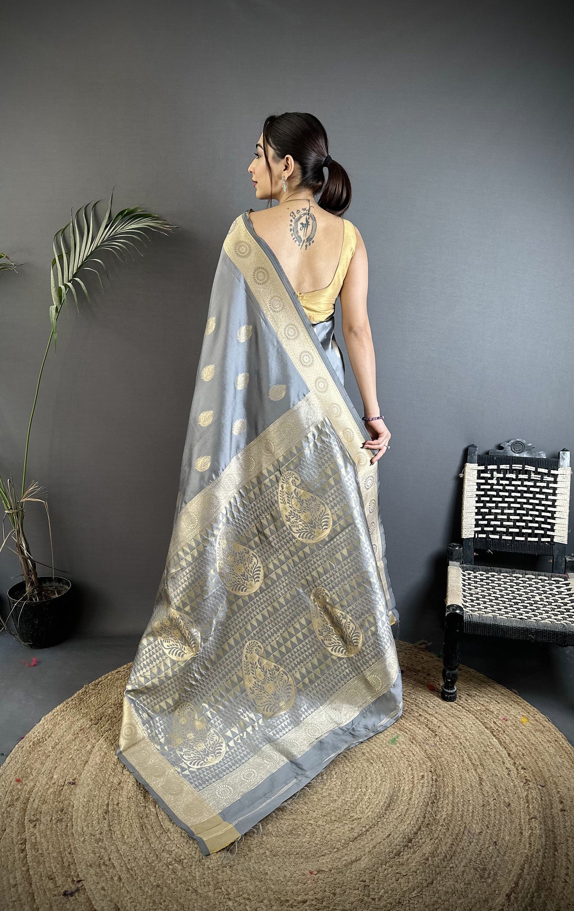 Grey Soft Silk Paisley Zari Woven Banarasi Saree
