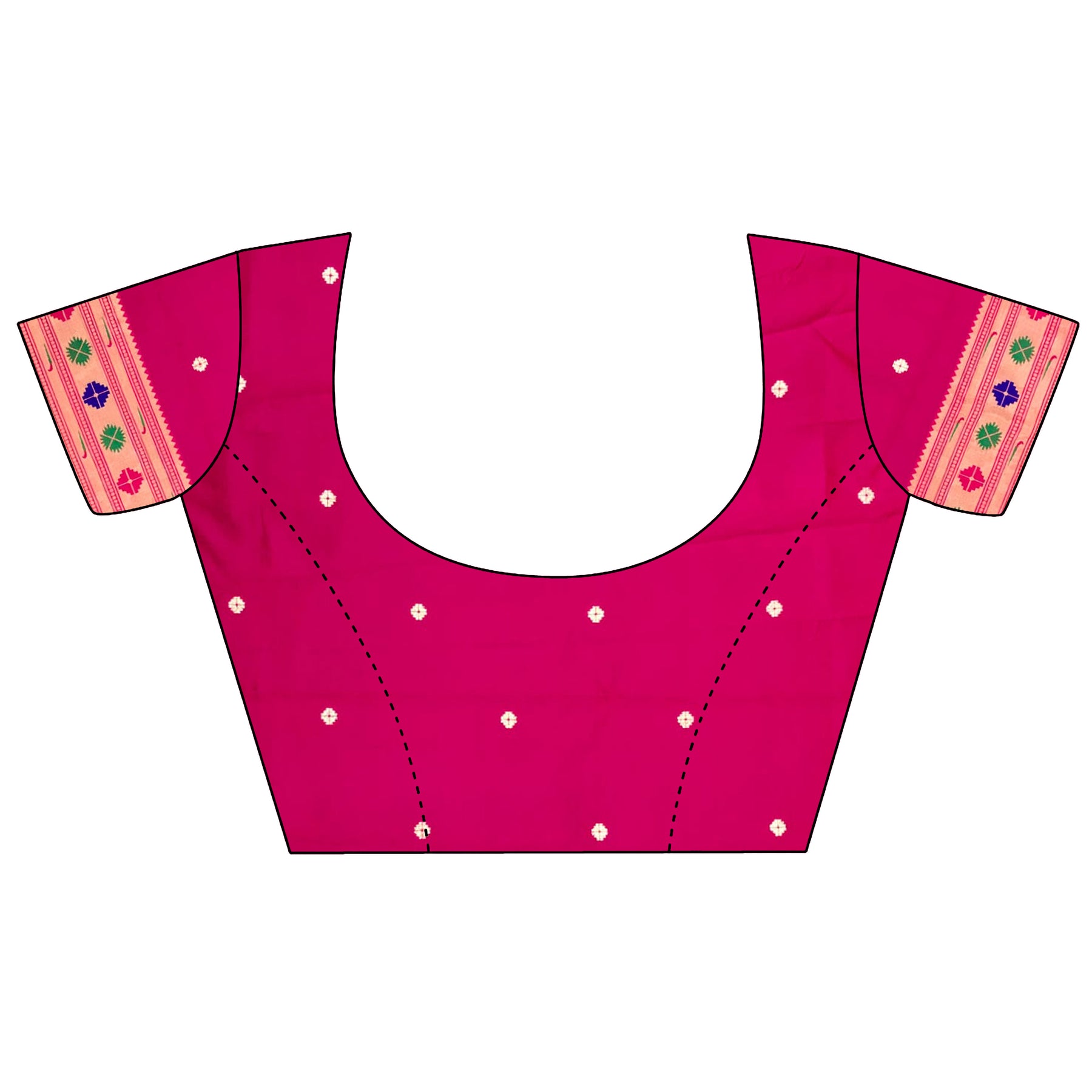 Flaunt your style with this Tissue Zari Weaving Minakari Work Paithani Saree With Mor Border For Women. unique design and beautiful colour Saree. Each piece is elegantly crafted with love and will surely add to your wardrobe. They will surely fetch a lot of second glances as you club it with flashy accessory. Pair this piece with heels or flats for a graceful look.