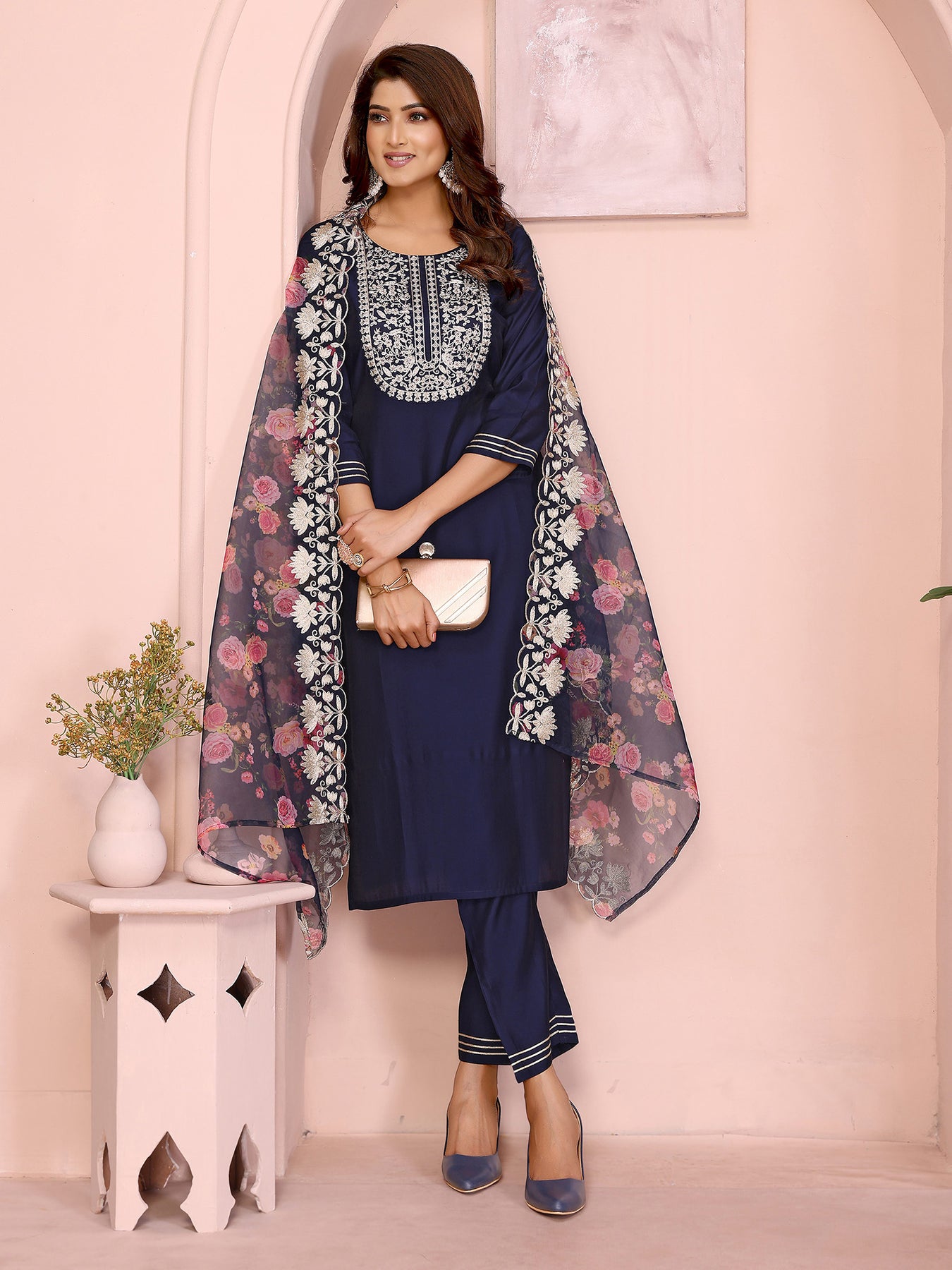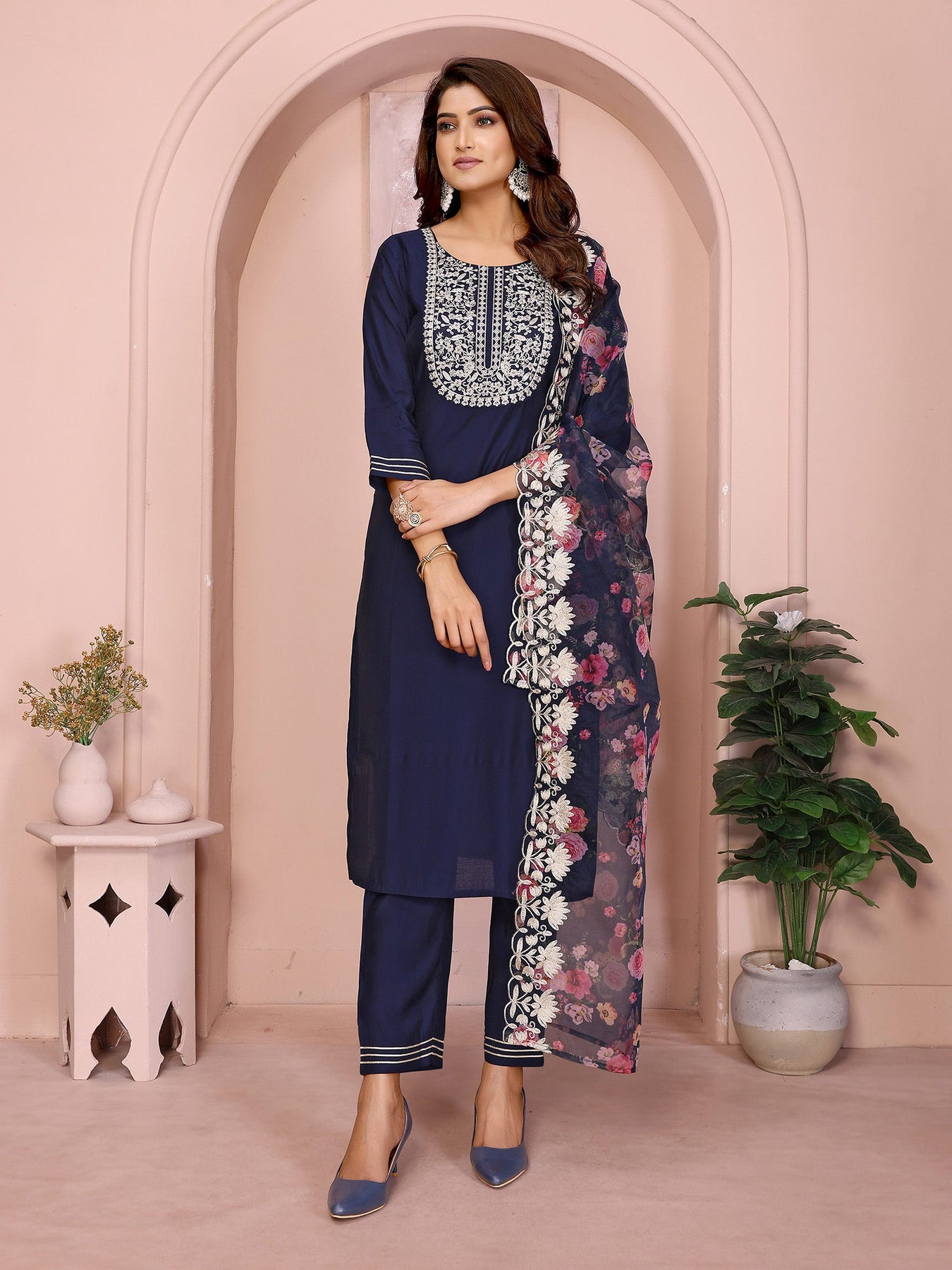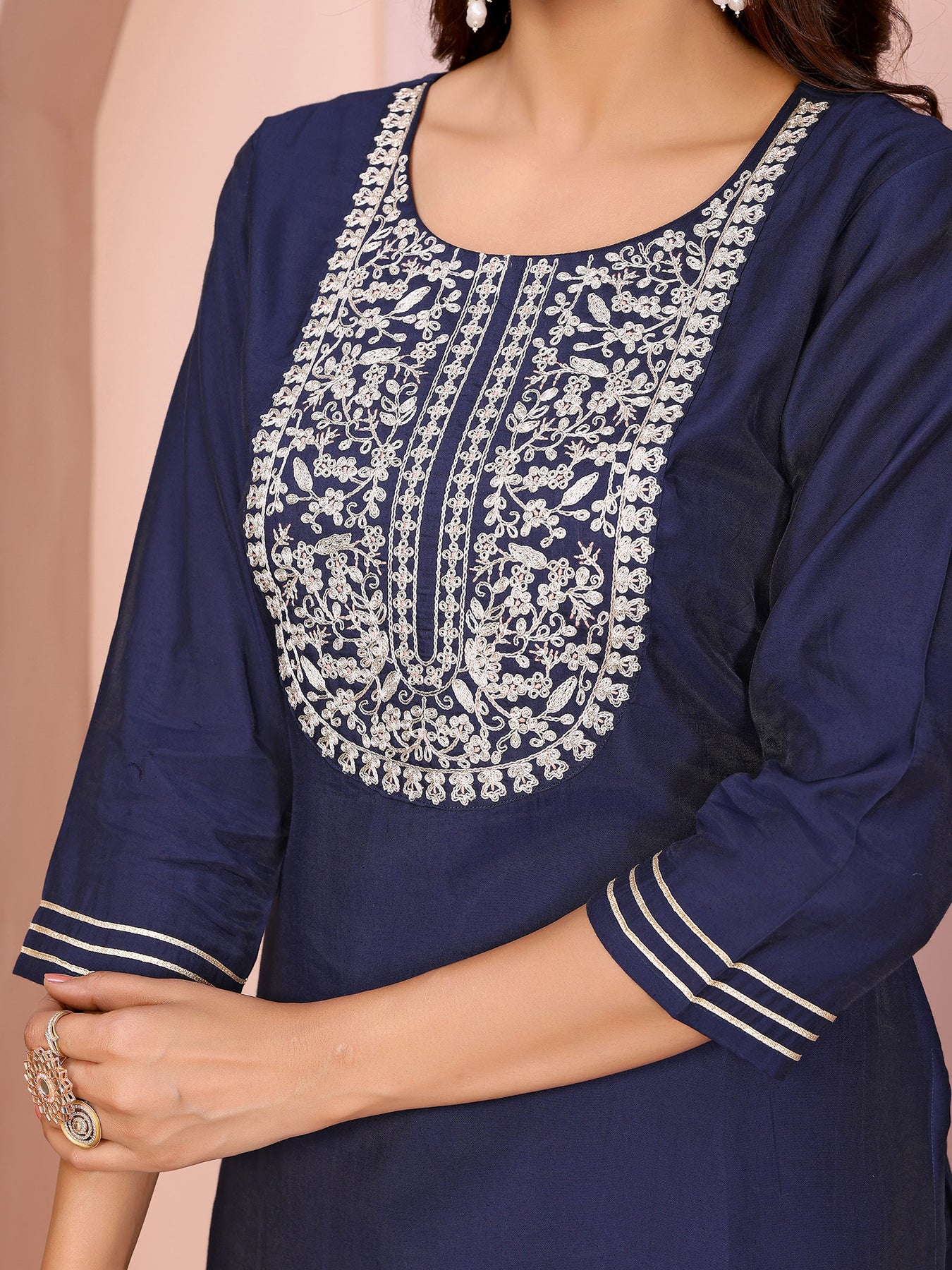 Pair this graceful navy blue kurta set with minimal jewelry or traditional flats for a polished Indian look. Ideal for family functions, casual outings, and festive wear, it blends timeless Indian ethnic fashion with versatile everyday comfort.