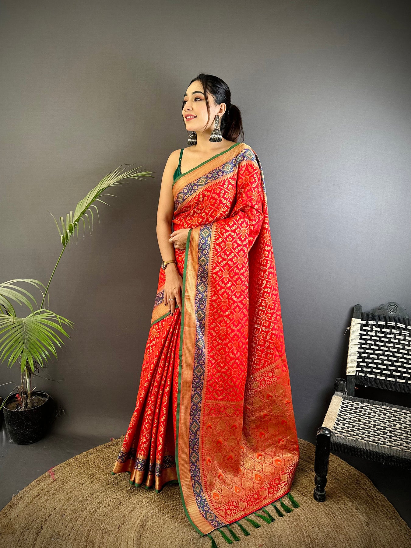 Flaunt your style with this Soft Silk Zari Weaving Patola Saree For Women. unique design and beautiful colour Saree. Each piece is elegantly crafted with love and will surely add to your wardrobe. They will surely fetch a lot of second glances as you club it with flashy accessory. Pair this piece with heels or flats for a graceful look.
