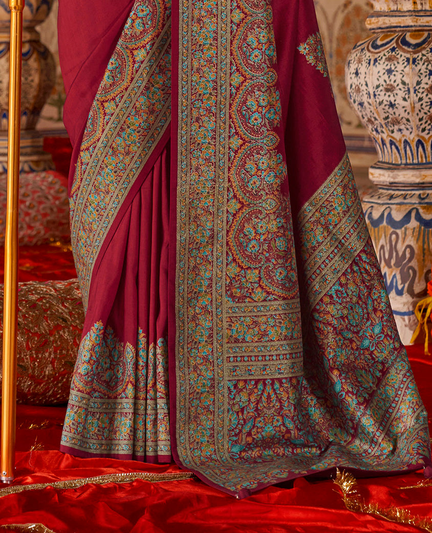 Maroon Banarasi Zari Woven Designer Saree
