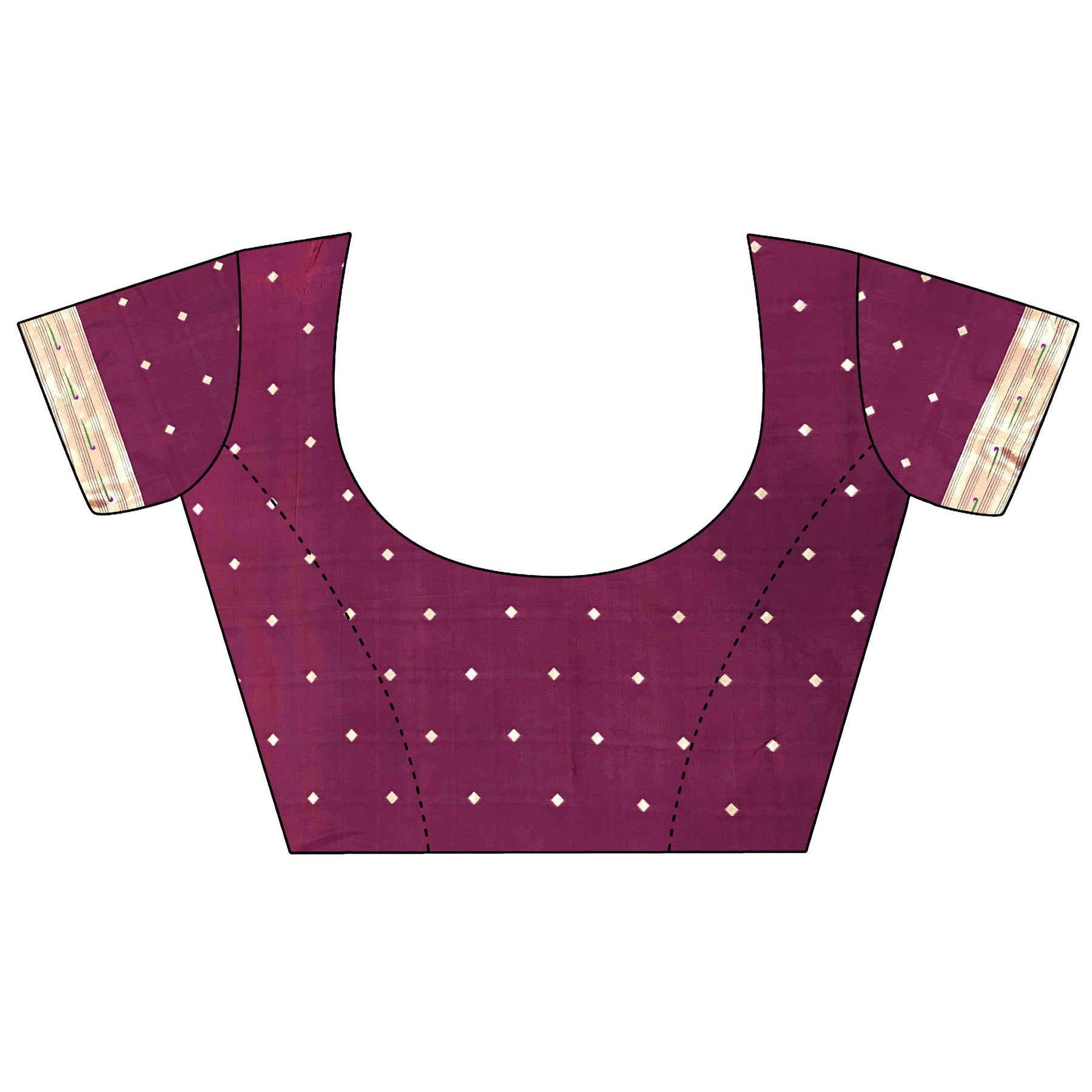 Discover the charm of this Maroon Lichi Silk Floral & Meena Weaving Zari Worked Paithani Saree. Made from smooth lichi silk, it feels soft and drapes well, making it ideal for weddings, festivals, and special events.
