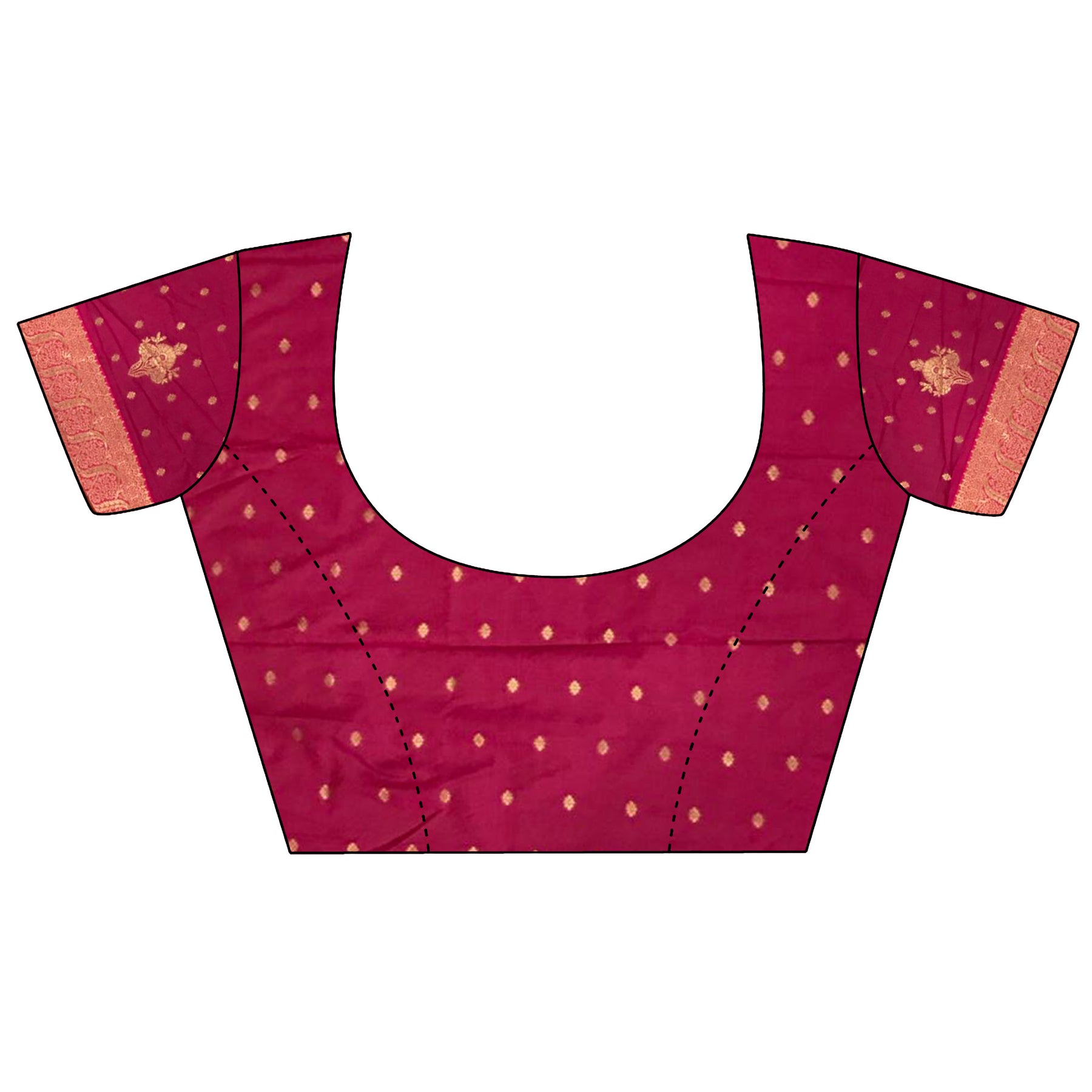 Flaunt your style with this Woven Dual Zari Work Banarasi Saree with Unstitched Blouse For Women. unique design and beautiful colour Saree. Each piece is elegantly crafted with love and will surely add to your wardrobe. They will surely fetch a lot of second glances as you club it with flashy accessory. Pair this piece with heels or flats for a graceful look.
